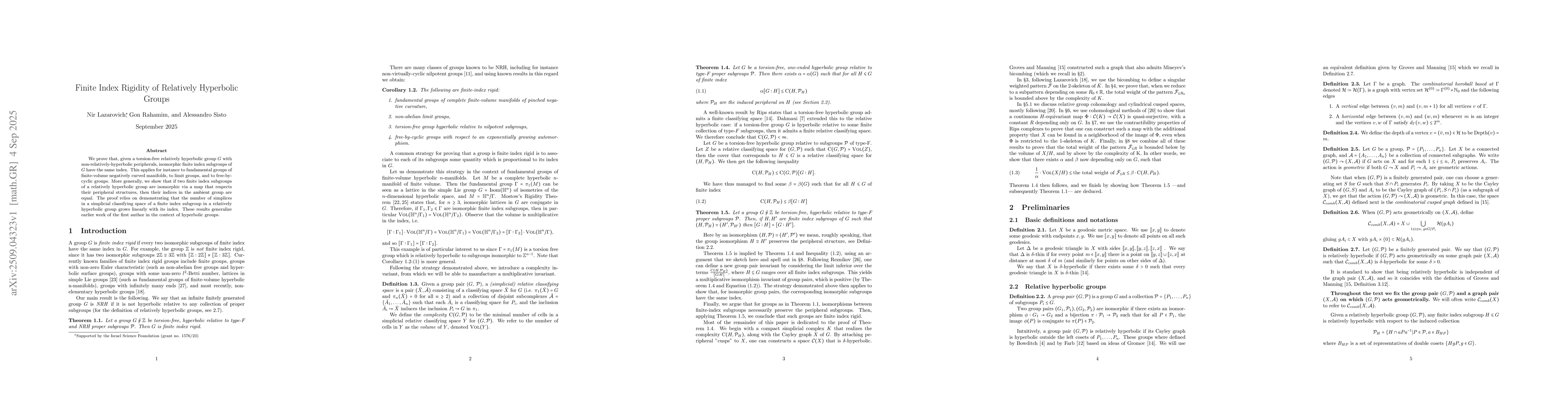 We prove that, given a torsion-free relatively hyperbolic group G with non-relatively-hyperbolic peripherals, isomorphic finite index subgroups of G have the same index. This applies for instance to fundamental groups of finite-volume negatively curved manifolds, to limit groups, and to free-by-cyclic groups. More generally, we show that if two finite index subgroups of a relatively hyperbolic group are isomorphic via a map that respects their peripheral structures, then their indices in the ambient group are equal. The proof relies on demonstrating that the number of simplices in a simplicial classifying space of a finite index subgroup in a relatively hyperbolic group grows linearly with its index. These results generalize earlier work of the first author in the context of hyperbolic groups.