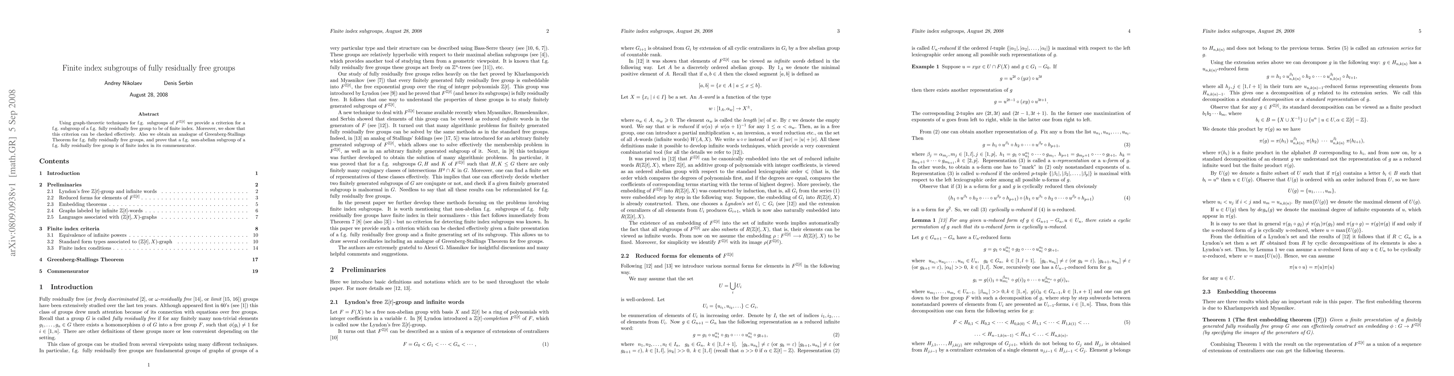 This paper establishes a criterion for finite index subgroups in fully residually free groups using graph-theoretic methods, demonstrating its effective checkability. It also proves an analogue of the Greenberg-Stallings Theorem for these groups, showing that non-abelian subgroups are of finite index in their commensurators.