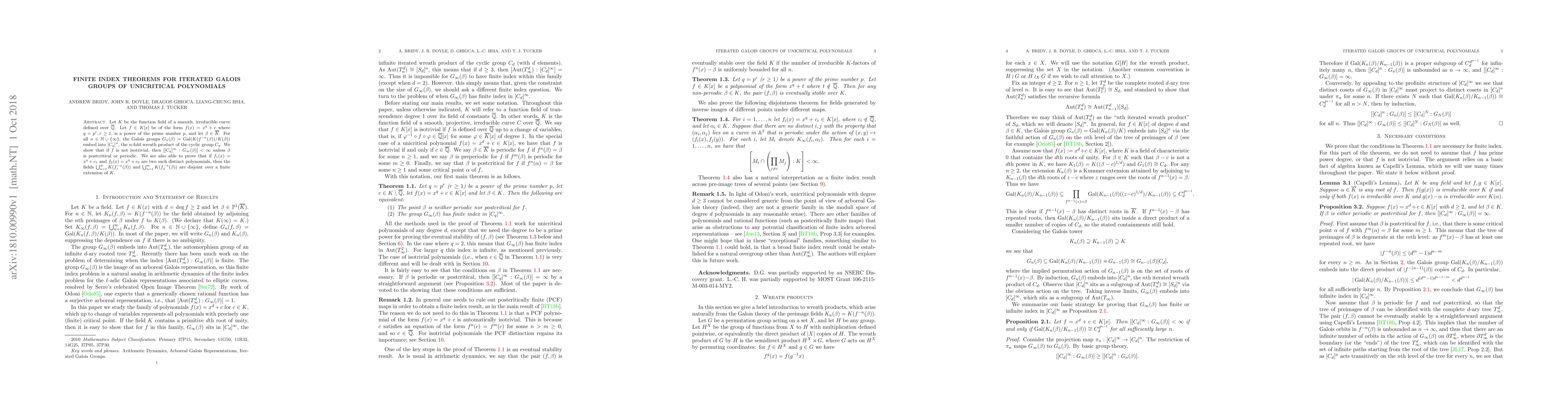 Let $K$ be the function field of a smooth, irreducible curve defined over $\overline{\mathbb{Q}}$. Let $f\in K[x]$ be of the form $f(x)=x^q+c$ where $q = p^{r}, r \ge 1,$ is a power of the prime number $p$, and let $\beta\in \overline{K}$. For all $n\in\mathbb{N}\cup\{\infty\}$, the Galois groups $G_n(\beta)=\mathop{\rm{Gal}}(K(f^{-n}(\beta))/K(\beta))$ embed into $[C_q]^n$, the $n$-fold wreath product of the cyclic group $C_q$. We show that if $f$ is not isotrivial, then $[[C_q]^\infty:G_\infty(\beta)]<\infty$ unless $\beta$ is postcritical or periodic. We are also able to prove that if $f_1(x)=x^q+c_1$ and $f_2(x)=x^q+c_2$ are two such distinct polynomials, then the fields $\bigcup_{n=1}^\infty K(f_1^{-n}(\beta))$ and $\bigcup_{n=1}^\infty K(f_2^{-n}(\beta))$ are disjoint over a finite extension of $K$.