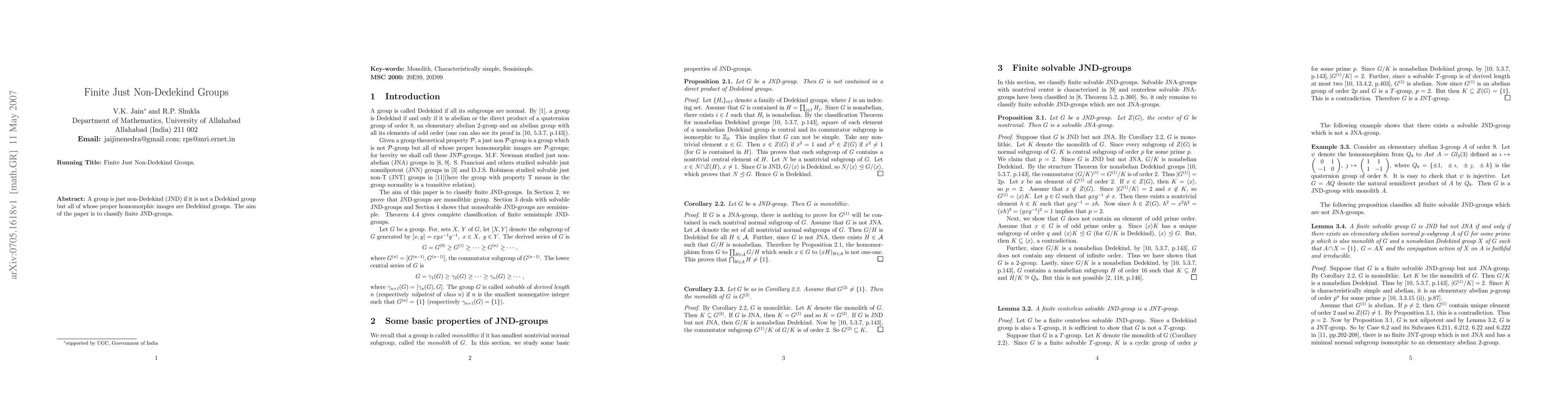 A group is just non-Dedekind (JND) if it is not a Dedekind group but all of whose proper homomorphic images are Dedekind groups. The aim of the paper is to classify finite JND-groups.