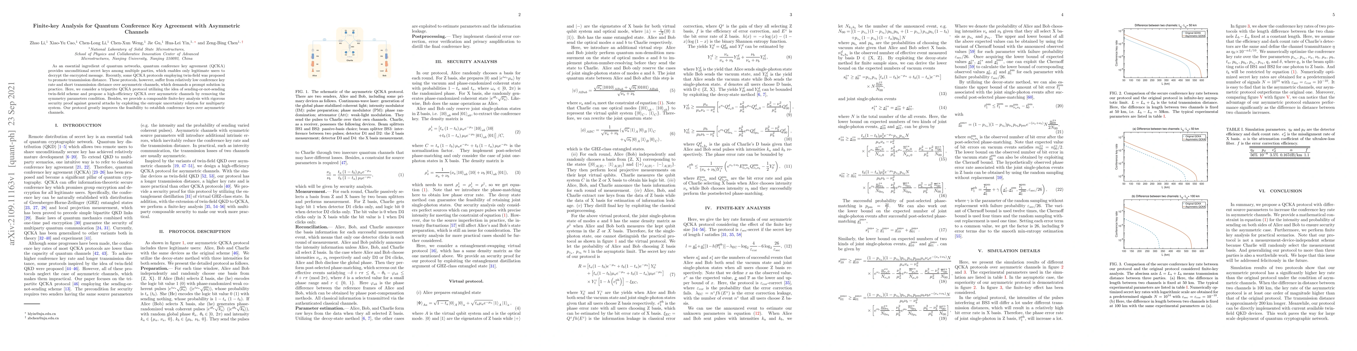 This paper proposes a high-efficiency tripartite quantum conference key agreement protocol over asymmetric channels, addressing low key rate and short distance issues. It introduces a novel sending-or-not-sending twin-field scheme and provides a rigorous finite-key analysis with security proof, significantly enhancing key establishment feasibility.