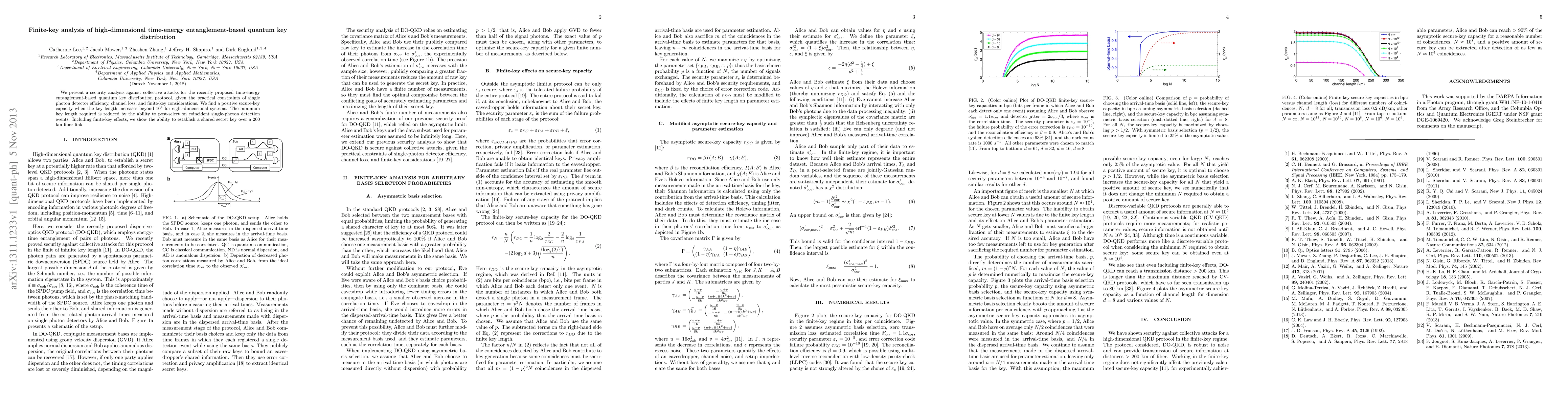 We present a security analysis against collective attacks for the recently proposed time-energy entanglement-based quantum key distribution protocol, given the practical constraints of single photon detector efficiency, channel loss, and finite-key considerations. We find a positive secure-key capacity when the key length increases beyond $10^4$ for eight-dimensional systems. The minimum key length required is reduced by the ability to post-select on coincident single-photon detection events. Including finite-key effects, we show the ability to establish a shared secret key over a 200 km fiber link.