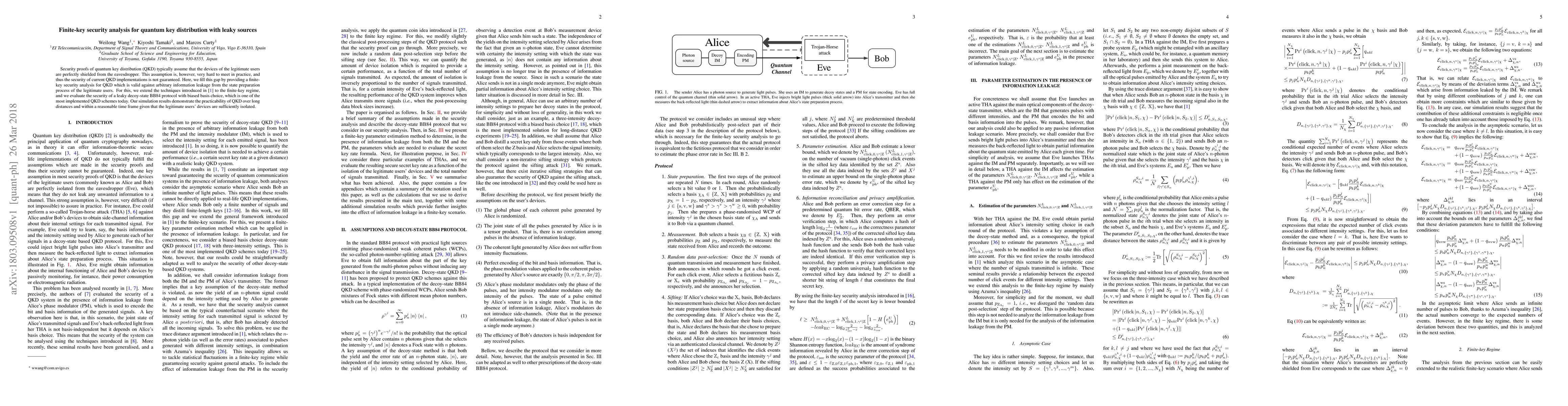 This paper presents a finite-key security analysis for quantum key distribution (QKD) that accounts for practical imperfections, such as information leakage from the legitimate users' devices. The study evaluates the security of a leaky decoy-state BB84 protocol, demonstrating its feasibility over long distances under realistic conditions.