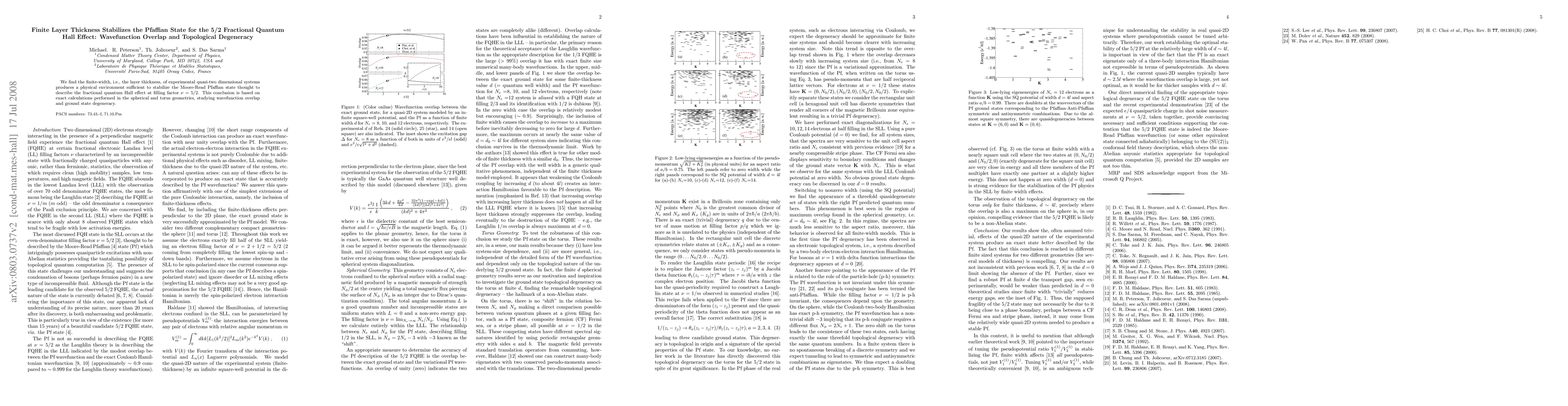 We find the finite-width, i.e., the layer thickness, of experimental quasi-two dimensional systems produces a physical environment sufficient to stabilize the Moore-Read Pfaffian state thought to describe the fractional quantum Hall effect at filling factor $\nu=5/2$. This conclusion is based on exact calculations performed in the spherical and torus geometries, studying wavefunction overlap and ground state degeneracy