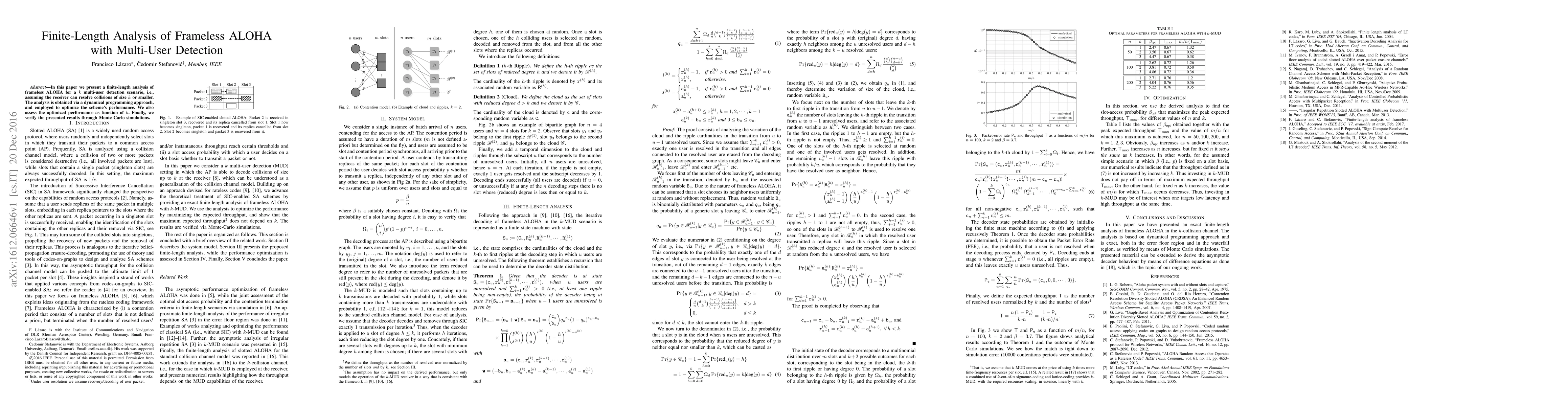 This paper conducts a finite-length analysis of frameless ALOHA in multi-user detection scenarios using dynamic programming, optimizing performance for collision sizes up to k, and validates findings with Monte Carlo simulations.