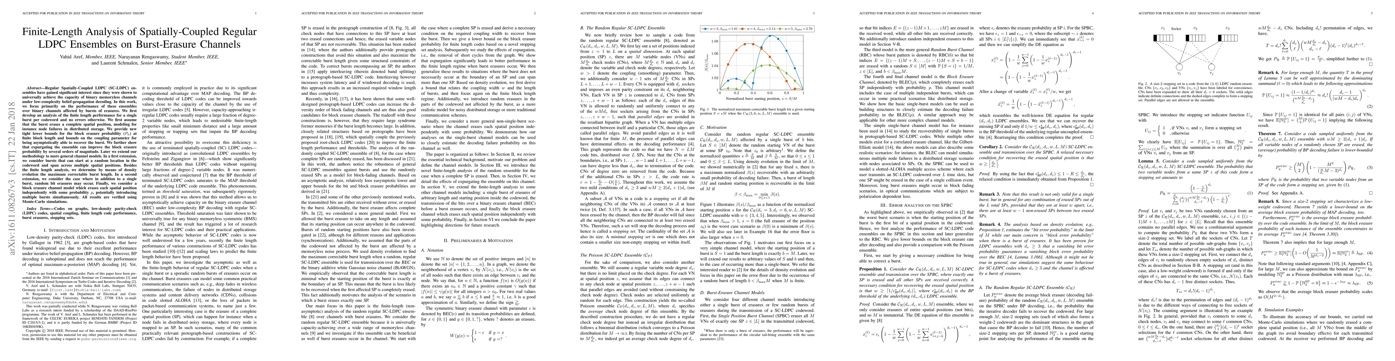 This paper analyzes the finite-length performance of regular spatially-coupled LDPC ensembles over channels with burst erasures, providing tight lower bounds for block erasure probability and demonstrating significant improvements through expurgating the ensemble. It extends the analysis to more general burst models and random bit erasures, verified by Monte-Carlo simulations.