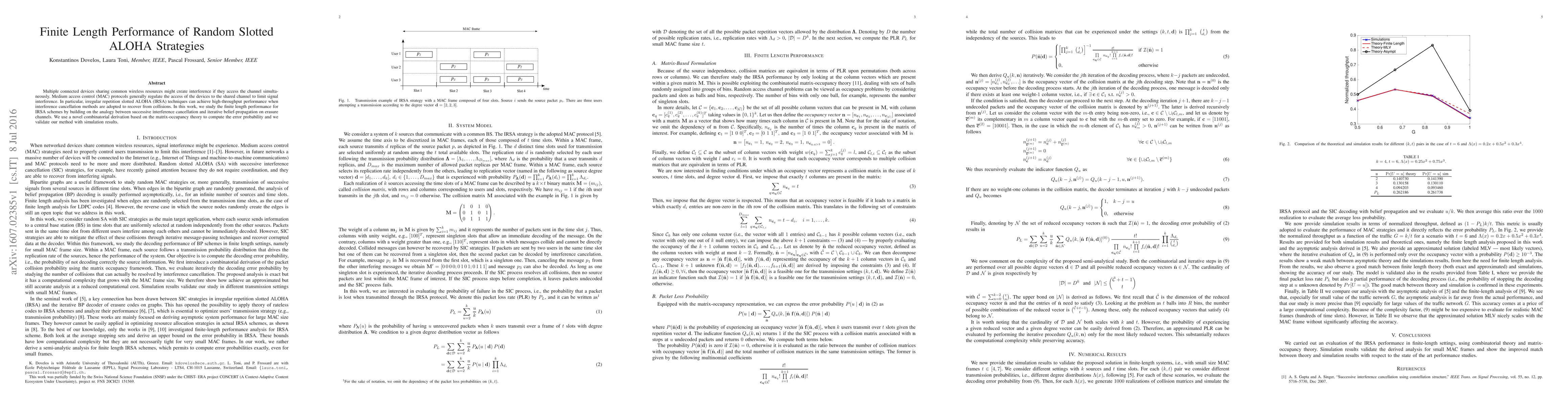 This paper investigates the finite length performance of irregular repetition slotted ALOHA (IRSA) strategies, leveraging successive interference cancellation and iterative belief-propagation. A novel combinatorial approach based on matrix-occupancy theory is developed to compute error probabilities, validated through simulation.