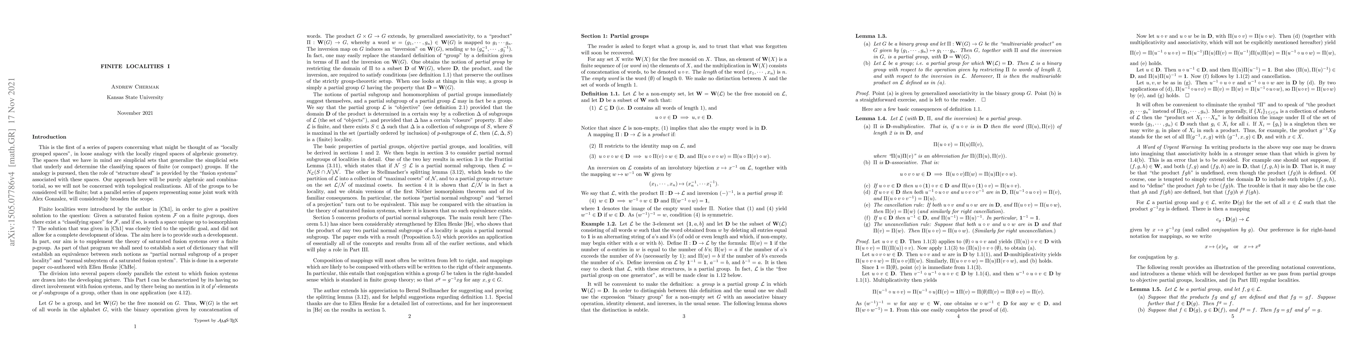 This paper concerns partial groups, objective partial groups, and (finite) localities, with special attention given to the quotient of a locality by a partial normal subgroup.