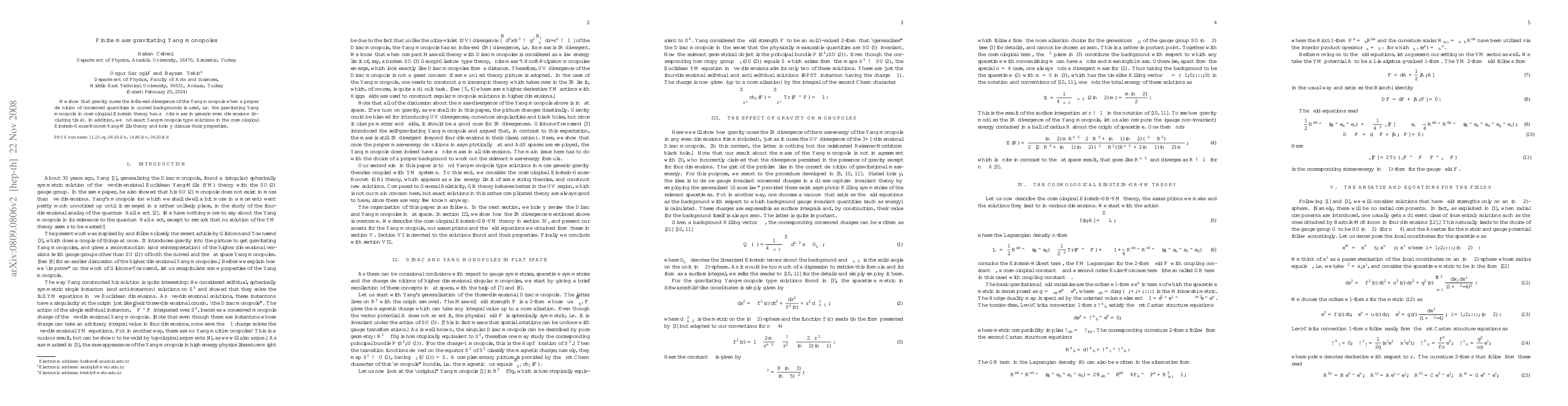 We show that gravity cures the infra-red divergence of the Yang monopole when a proper definition of conserved quantities in curved backgrounds is used, i.e. the gravitating Yang monopole in cosmological Einstein theory has a finite mass in generic even dimensions (including time). In addition, we find exact Yang-monopole type solutions in the cosmological Einstein-Gauss-Bonnet-Yang-Mills theory and briefly discuss their properties.