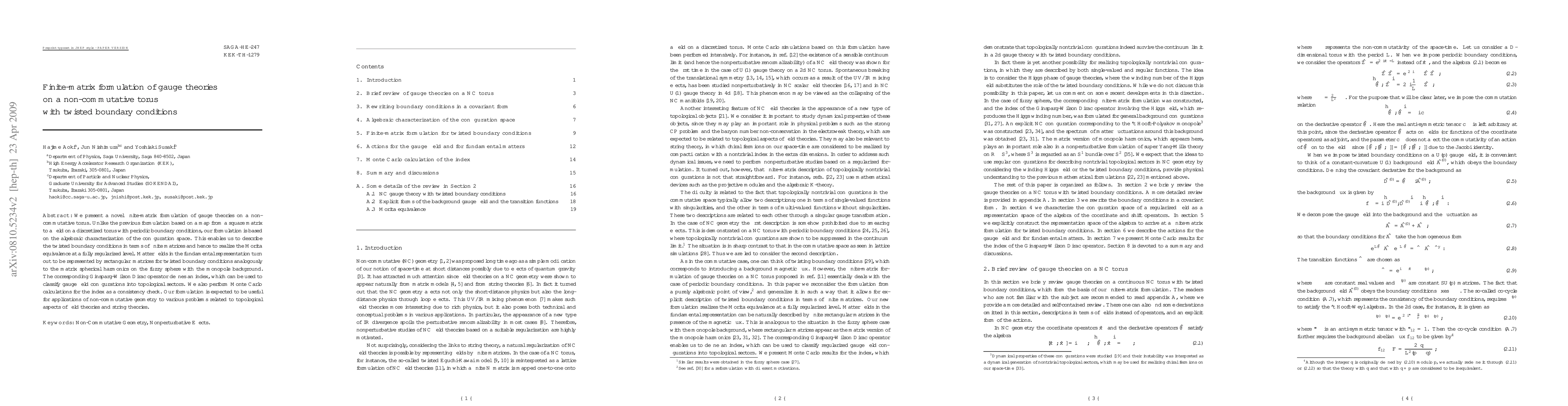 This paper introduces a finite-matrix formulation for gauge theories on a non-commutative torus with twisted boundary conditions, differing from previous methods by using algebraic characterization. It realizes Morita equivalence and Monte Carlo calculations to classify gauge field configurations into topological sectors.