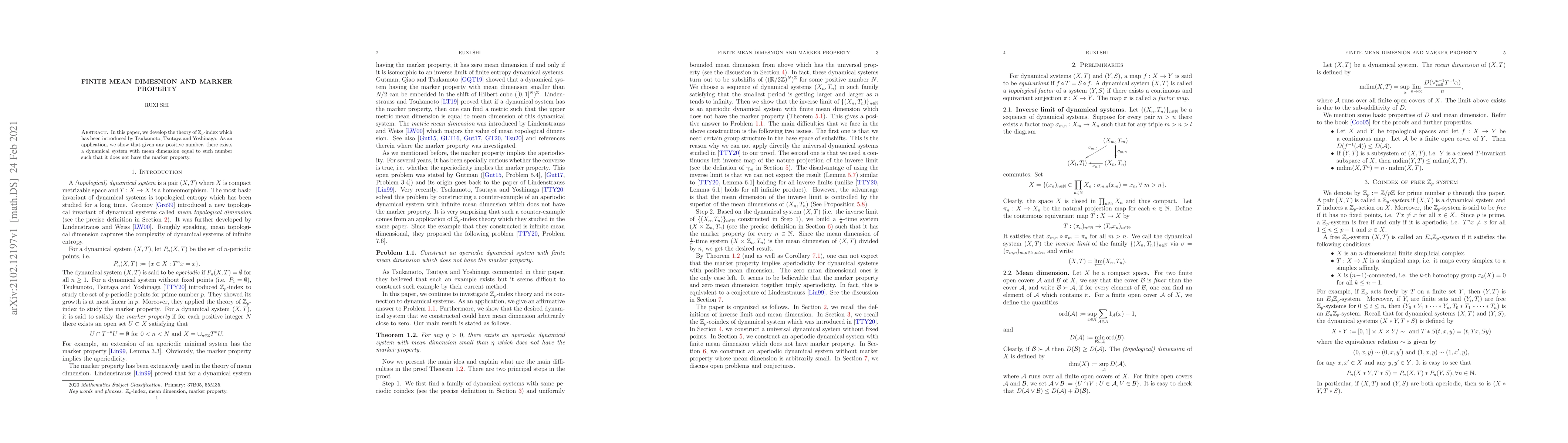 In this paper, we develop the theory of $\mathbb{Z}_p$-index which has been introduced by Tsukamoto, Tsutaya and Yoshinaga. As an application, we show that given any positive number, there exists a dynamical system with mean dimension equal to such number such that it does not have the marker property.