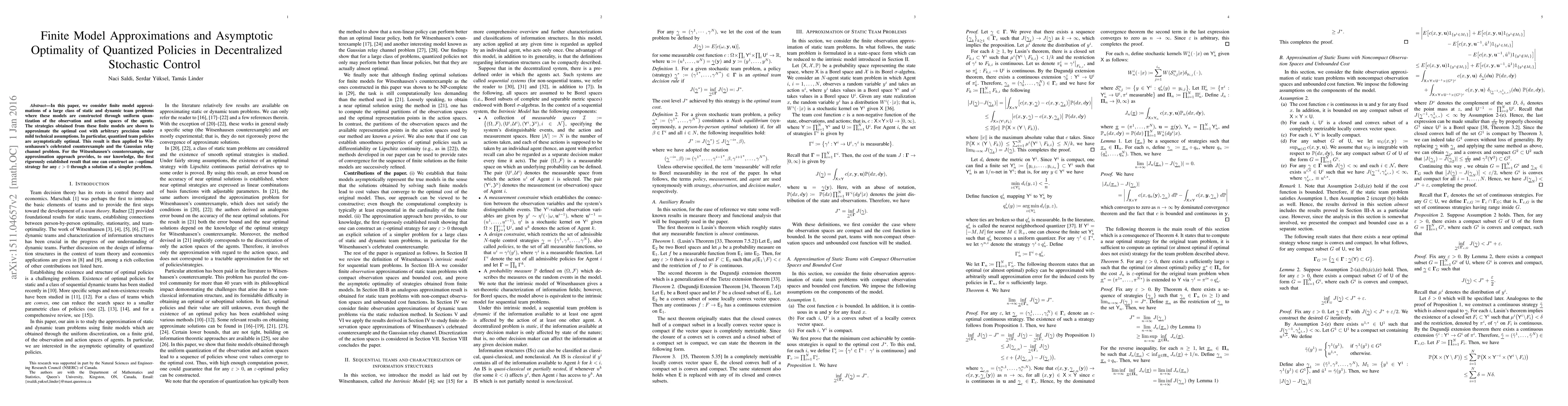 Researchers show that using finite model approximations with quantized policies can achieve optimal results in decentralized stochastic control with arbitrary precision. This approach solves long-standing problems, including Witsenhausen's counterexample.