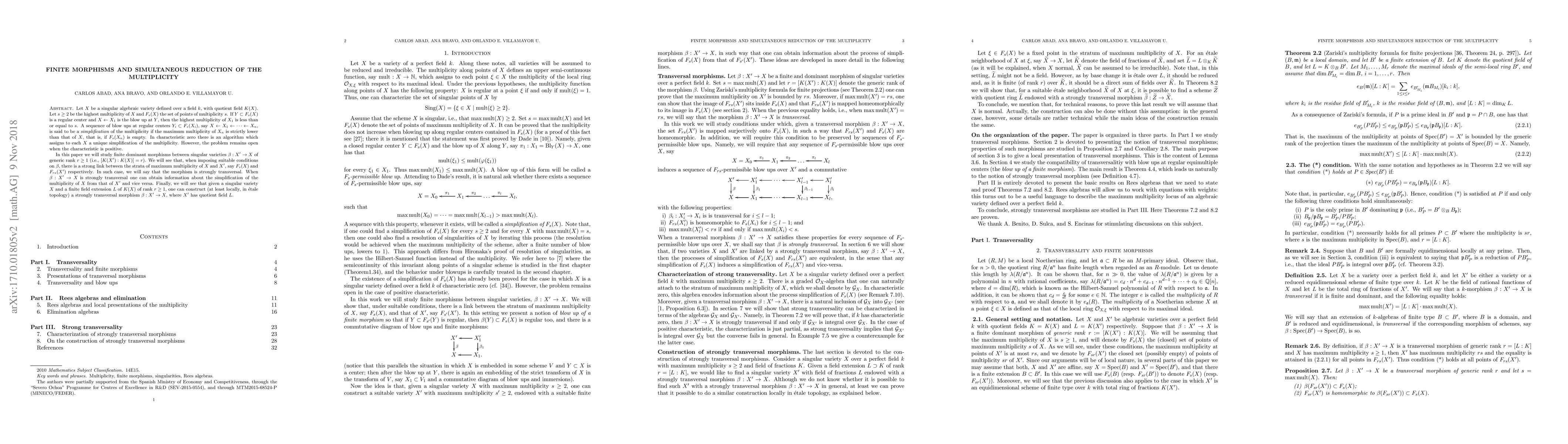 Let $X$ be a singular algebraic variety defined over a field $k$, with quotient field $K(X)$. Let $s \geq 2$ be the highest multiplicity of $X$ and $F_s(X)$ the set of points of multiplicity $s$. If $Y\subset F_s(X)$ is a regular center and $X\leftarrow X_1$ is the blow up at $Y$, then the highest multiplicity of $X_1$ is less than or equal to $s$. A sequence of blow ups at regular centers $Y_i \subset F_s(X_i)$, say $X \leftarrow X_1 \leftarrow \dotsb \leftarrow X_n$, is said to be a {\em simplification} of the multiplicity if the maximum multiplicity of $X_n$ is strictly lower than that of $X$, that is, if $F_s(X_n) $ is empty. In characteristic zero there is an algorithm which assigns to each $X$ a unique simplification of the multiplicity. However, the problem remains open when the characteristic is positive. In this paper we will study finite dominant morphisms between singular varieties $\beta: X'\to X$ of generic rank $r \geq 1$ (i.e., $[K(X'):K(X)]=r$). We will see that, when imposing suitable conditions on $\beta$, there is a strong link between the strata of maximum multiplicity of $X$ and $X'$, say $F_{s}(X)$ and $F_{rs}(X')$ respectively. In such case, we will say that the morphism is strongly transversal. When $\beta: X'\to X$ is strongly transversal one can obtain information about the simplification of the multiplicity of $X$ from that of $X'$ and vice versa. Finally, we will see that given a singular variety $X$ and a finite field extension $L$ of $K(X)$ of rank $r \geq 1$, one can construct (at least locally, in \'etale topology) a strongly transversal morphism $\beta: X'\to X$, where $X'$ has quotient field $L$.