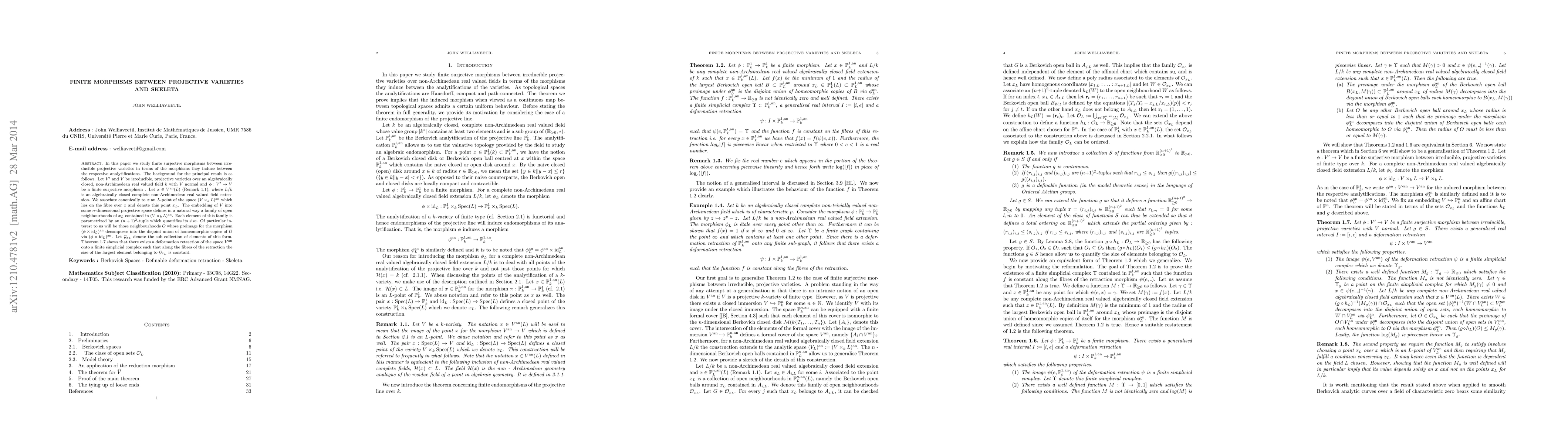 This research paper investigates finite morphisms between irreducible projective varieties, associating them with morphisms in their analytifications. A key finding is the existence of a deformation retraction of a projective variety onto a finite simplicial complex, with the size of the largest element in a specific set remaining constant along fibers of the retraction.