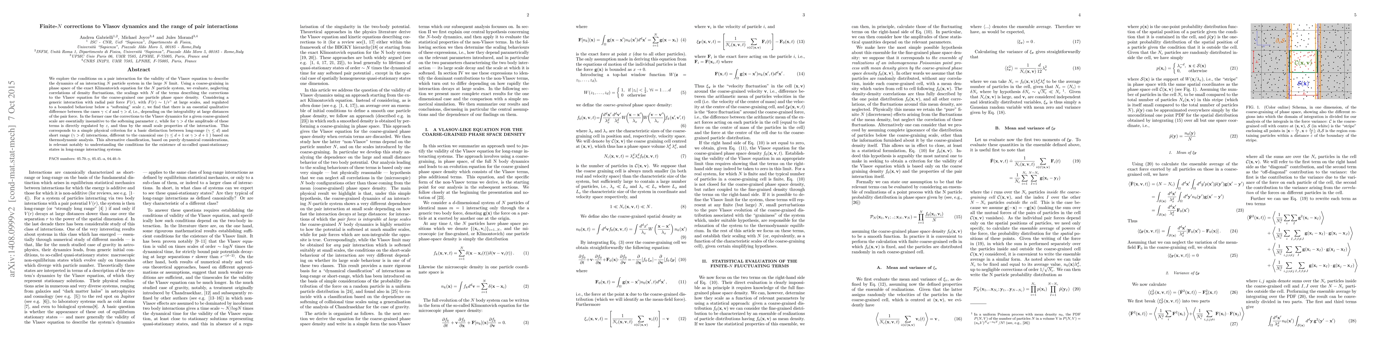 Researchers investigated whether Vlasov dynamics can accurately describe an N-particle system with pair interactions in the large N limit. They found that the validity of Vlasov dynamics depends on the integrability of the pair force at large distances, leading to a distinction between long-range and short-range interactions.