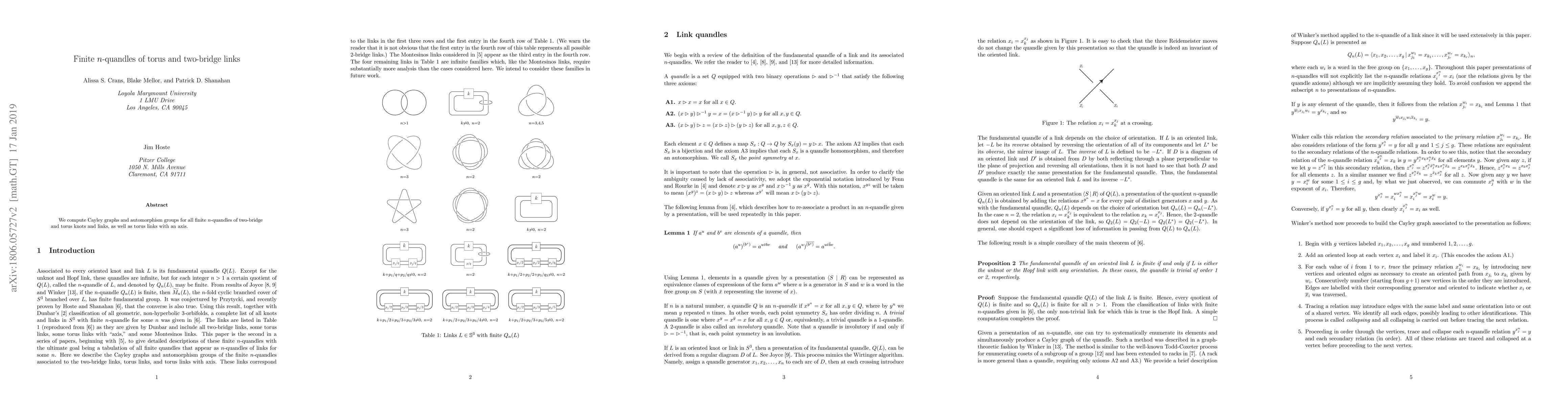 Summary: This paper calculates the Cayley graphs and automorphism groups for all finite $n$-quandles associated with two-bridge and torus knots and links, providing insights into their structural properties.