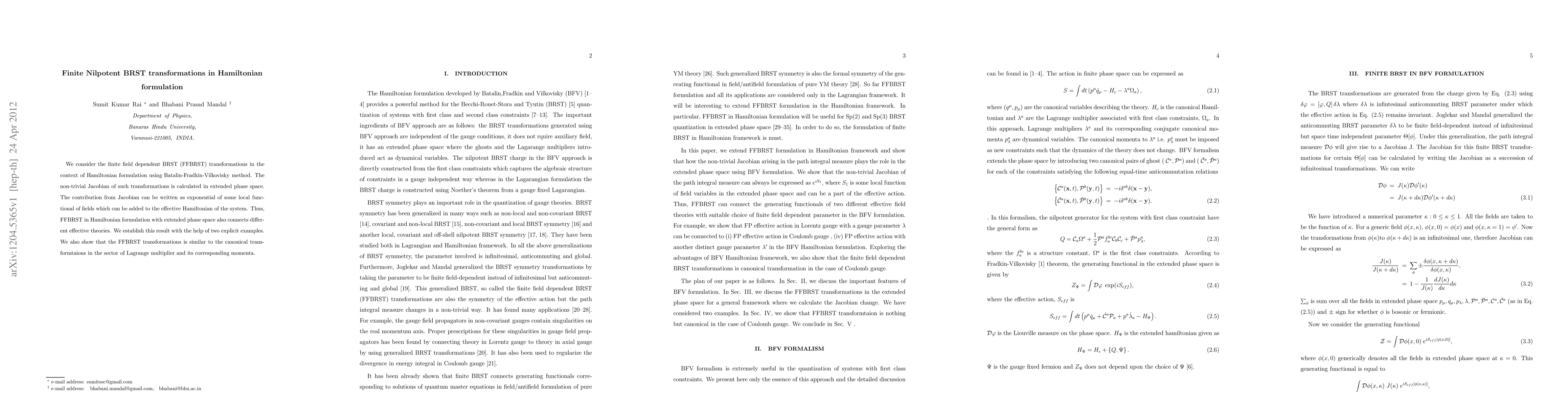 This paper explores finite field dependent BRST transformations within the Hamiltonian framework using the Batalin-Fradkin-Vilkovisky method, calculating the non-trivial Jacobian in an extended phase space. The Jacobian's contribution is expressed as an exponential of a local functional, which can be incorporated into the effective Hamiltonian, thereby linking different effective theories.