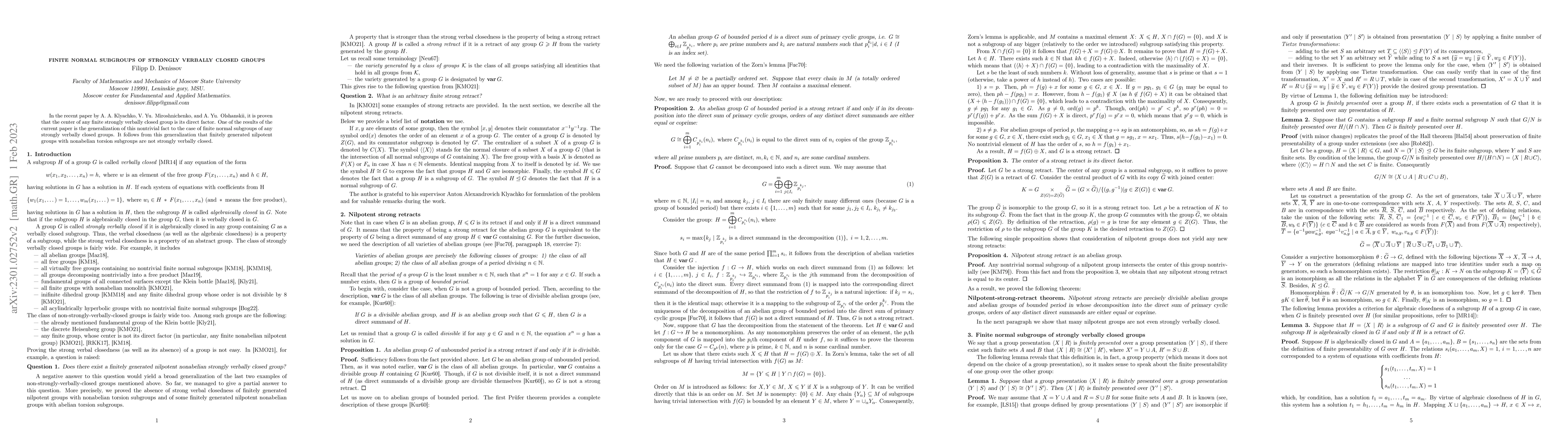 This paper generalizes the result that the center of a finite strongly verbally closed group is a direct factor to finite normal subgroups of such groups. It concludes that finitely generated nilpotent groups with nonabelian torsion cannot be strongly verbally closed.