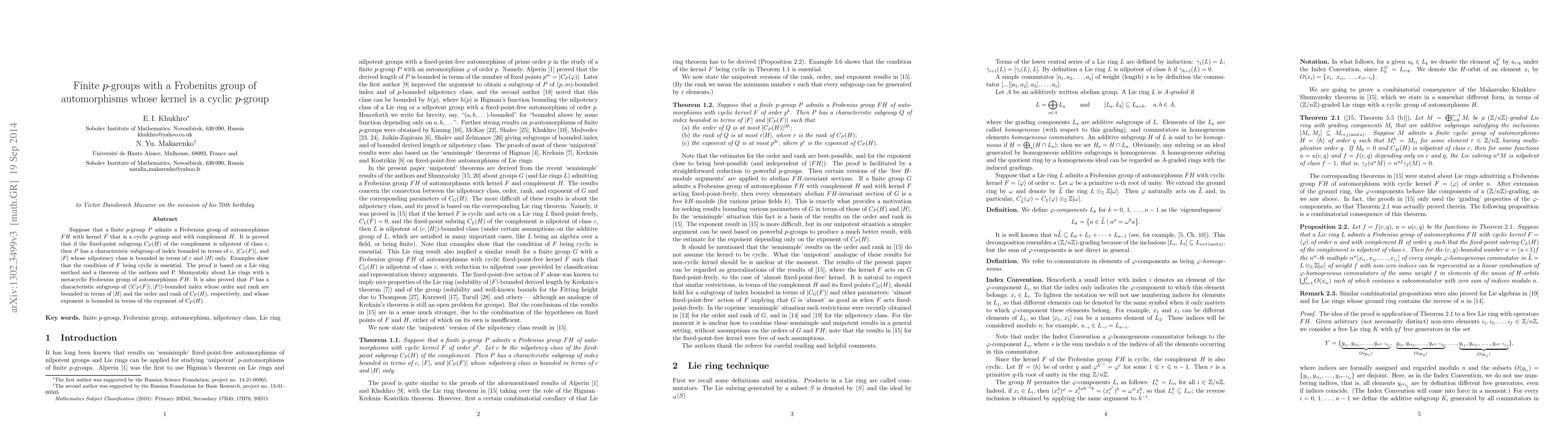 This paper investigates finite $p$-groups $P$ with a Frobenius group of automorphisms $FH$, where $F$ is a cyclic $p$-group and $H$ is the complement. It establishes bounds on the nilpotency class and index of characteristic subgroups of $P$, based on properties of $H$ and the fixed-point subgroup $C_P(H)$. The necessity of $F$ being cyclic is demonstrated through examples.