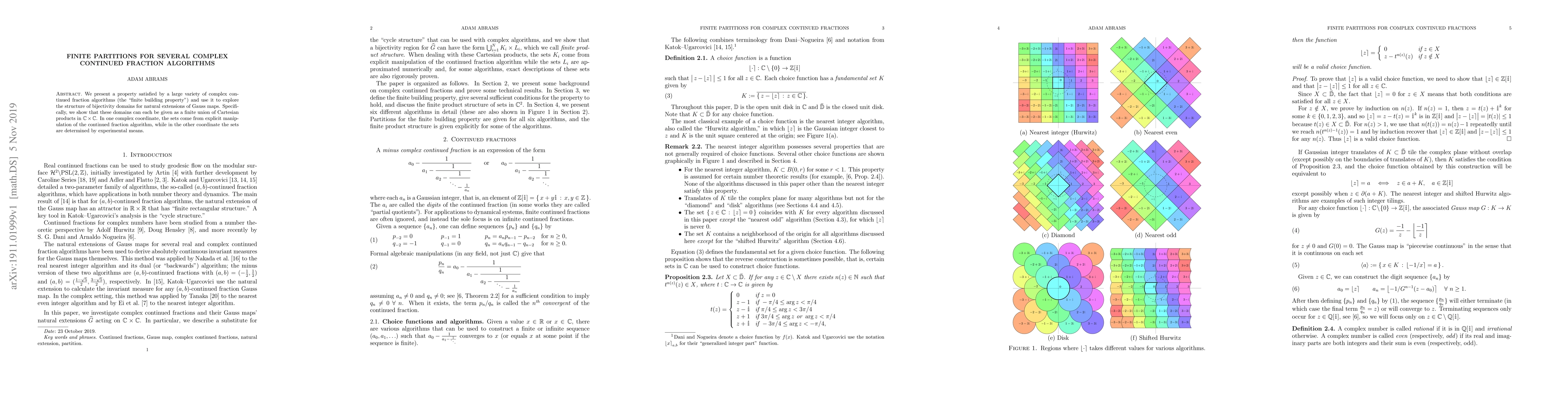 We present a property satisfied by a large variety of complex continued fraction algorithms (the "finite building property") and use it to explore the structure of bijectivity domains for natural extensions of Gauss maps. Specifically, we show that these domains can each be given as a finite union of Cartesian products. In one complex coordinate, the sets come from explicit manipulation of the continued fraction algorithm, while in the other coordinate the sets are determined by experimental means.