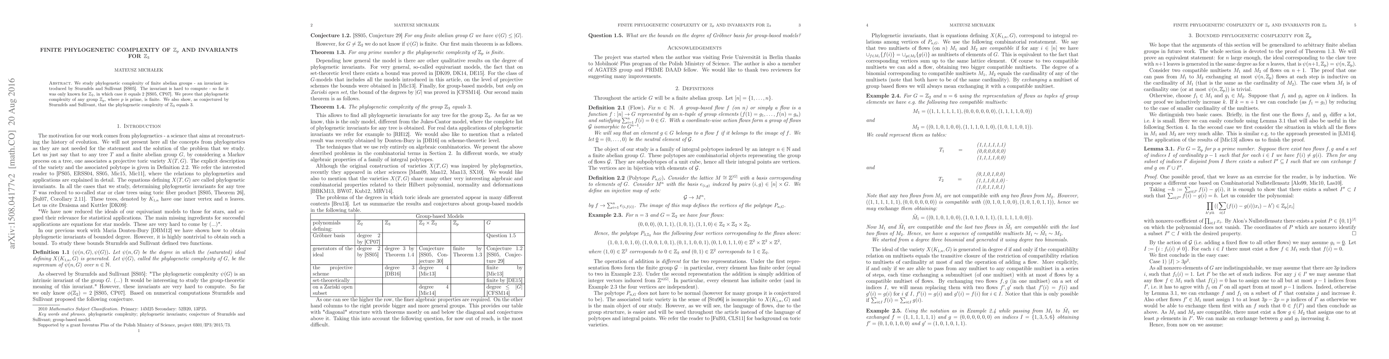 We study phylogenetic complexity of finite abelian groups - an invariant introduced by Sturmfels and Sullivant. The invariant is hard to compute - so far it was only known for $Z_2$, in which case it equals $2$. We prove that phylogenetic complexity of any group $Z_p$, where $p$ is prime, is finite. We also show, as conjectured by Sturmfels and Sullivant, that the phylogenetic complexity of $Z_3$ equals $3$.