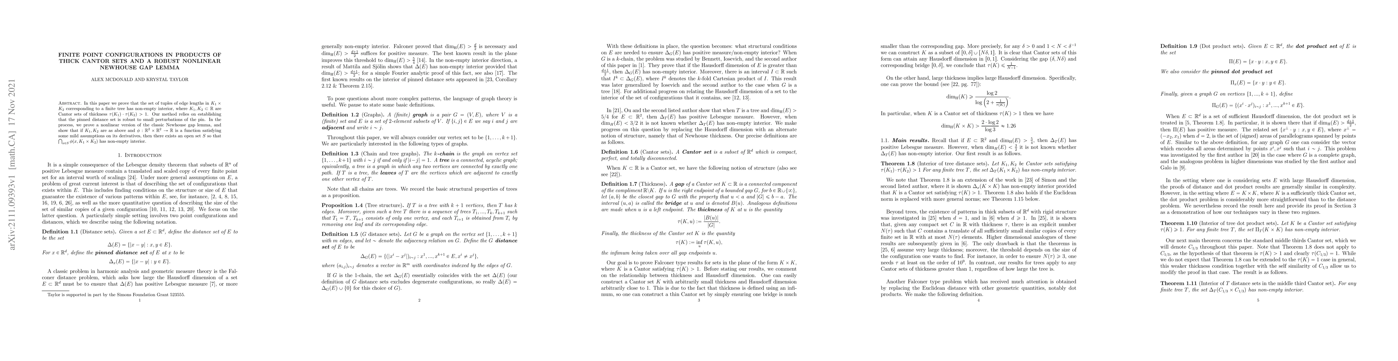 In this paper we prove that the set of tuples of edge lengths in $K_1\times K_2$ corresponding to a finite tree has non-empty interior, where $K_1,K_2\subset \mathbb{R}$ are Cantor sets of thickness $\tau(K_1)\cdot \tau(K_2) >1$. Our method relies on establishing that the pinned distance set is robust to small perturbations of the pin. In the process, we prove a nonlinear version of the classic Newhouse gap lemma, and show that if $K_1,K_2$ are as above and $\phi: \mathbb{R}^2\times \mathbb{R}^2 \rightarrow \mathbb{R} $ is a function satisfying some mild assumptions on its derivatives, then there exists an open set $S$ so that $\bigcap_{x \in S} \phi(x,K_1\times K_2)$ has non-empty interior.