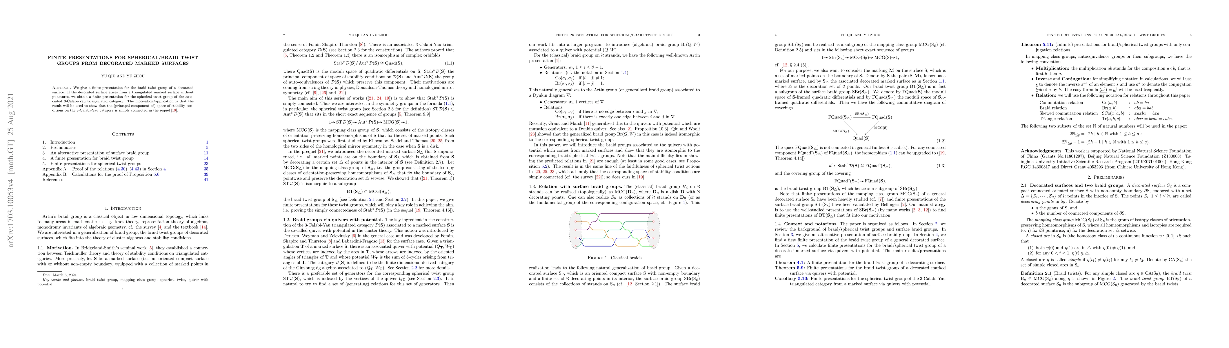 This paper provides a finite presentation for the braid twist group derived from decorated marked surfaces, extending this to a spherical twist group for associated 3-Calabi-Yau triangulated categories, crucial for proving the simple connectivity of stability conditions in these categories.