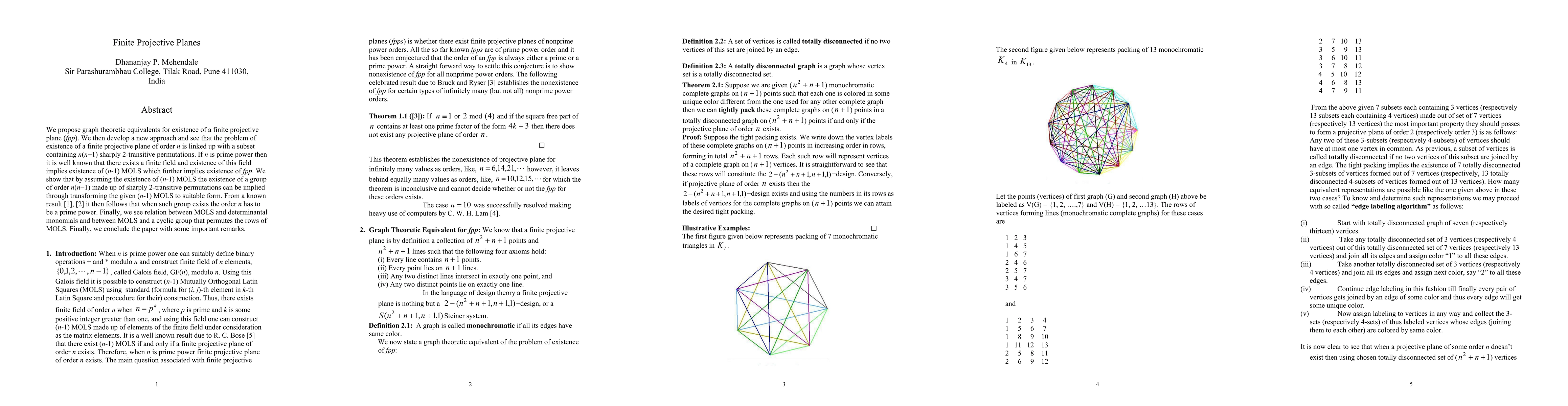 This work differs from existing research by introducing a graph theoretic approach to the existence problem of finite projective planes and connecting it to sharply 2-transitive permutations.