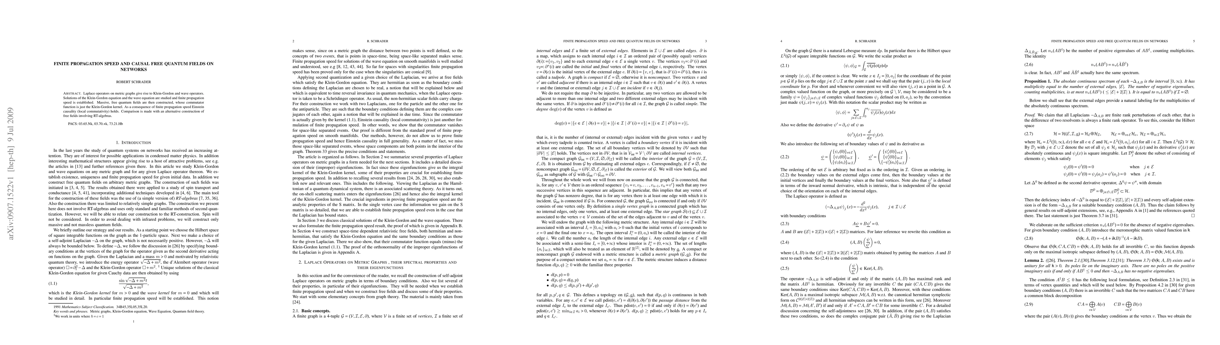 This paper explores Klein-Gordon and wave equations on metric graphs, establishing finite propagation speed and constructing massive, free quantum fields. It demonstrates that finite propagation speed implies Einstein causality, contrasting this with an alternative construction using RT-algebras.