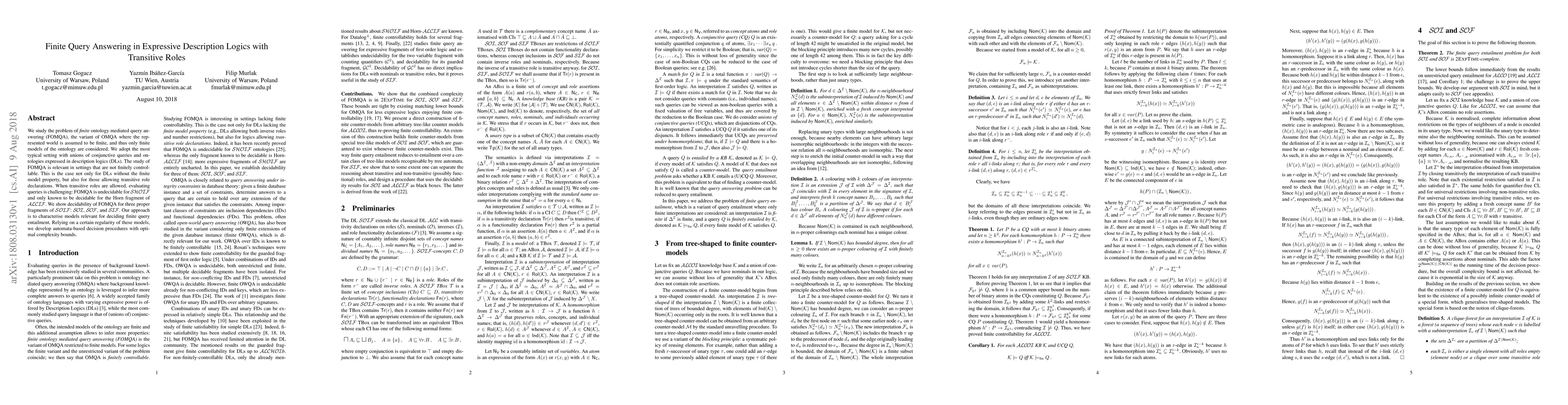 We study the problem of finite ontology mediated query answering (FOMQA), the variant of OMQA where the represented world is assumed to be finite, and thus only finite models of the ontology are considered. We adopt the most typical setting with unions of conjunctive queries and ontologies expressed in description logics (DLs). The study of FOMQA is relevant in settings that are not finitely controllable. This is the case not only for DLs without the finite model property, but also for those allowing transitive role declarations. When transitive roles are allowed, evaluating queries is challenging: FOMQA is undecidable for SHOIF and only known to be decidable for the Horn fragment of ALCIF. We show decidability of FOMQA for three proper fragments of SOIF: SOI, SOF, and SIF. Our approach is to characterise models relevant for deciding finite query entailment. Relying on a certain regularity of these models, we develop automata-based decision procedures with optimal complexity bounds.