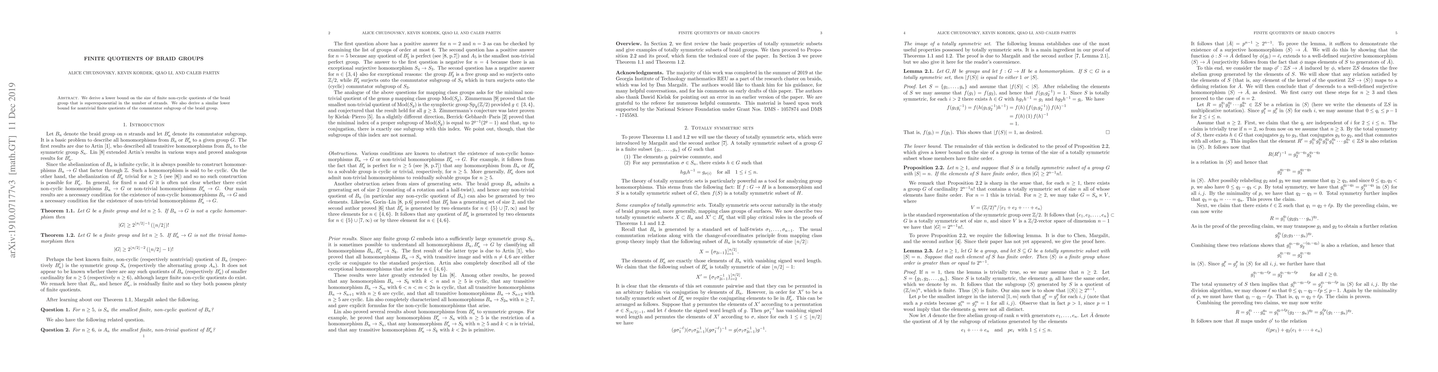 This research establishes superexponential lower bounds on the size of finite non-cyclic quotients of braid groups and their commutator subgroups, demonstrating significant complexity in these algebraic structures.