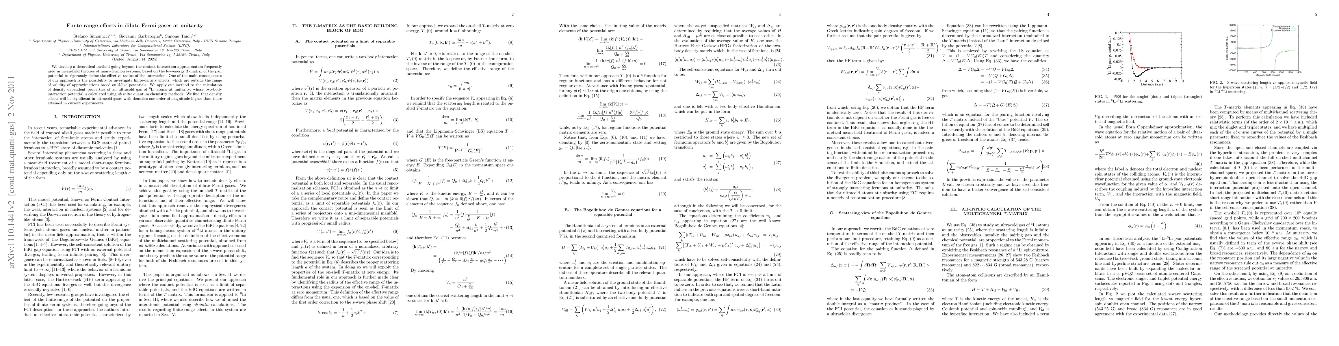 We develop a theoretical method going beyond the contact-interaction approximation frequently used in mean-field theories of many-fermion systems, based on the low-energy T-matrix of the pair potential to rigorously define the effective radius of the interaction. One of the main consequences of our approach is the possibility to investigate finite-density effects, which are outside the range of validity of approximations based on delta-like potentials. We apply our method to the calculation of density dependent properties of an ultracold gas of 6Li atoms at unitarity, whose two-body interaction potential is calculated using ab initio quantum chemistry methods. We find that density effects will be significant in ultracold gases with densities one order of magnitude higher than those attained in current experiments.