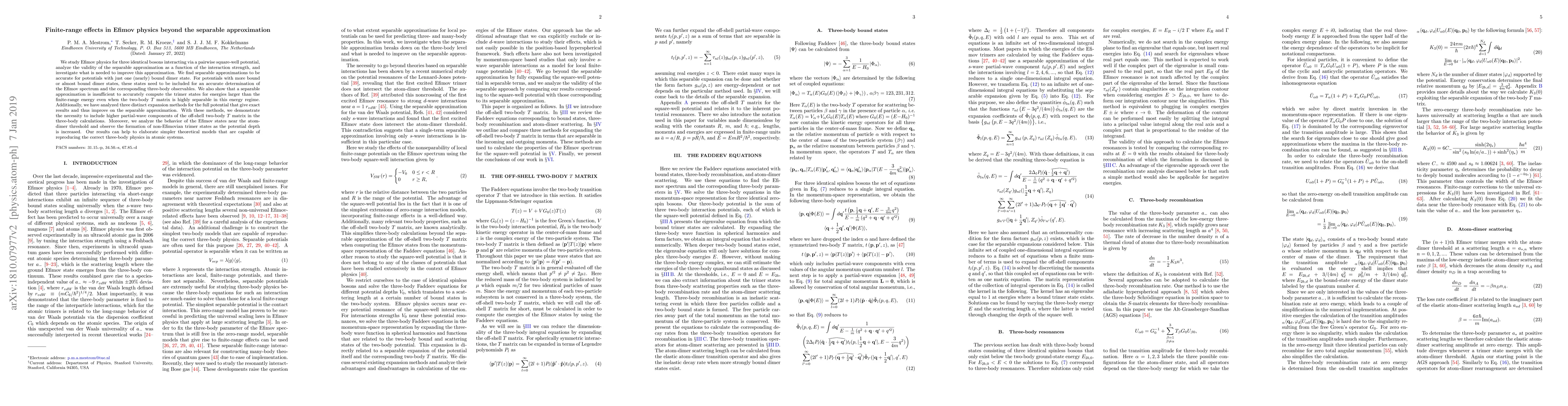 This paper examines Efimov physics for three identical bosons using a square-well potential, finding that separable approximations are accurate only for potentials with a single bound dimer state. It highlights the necessity of including higher partial-wave components and additional dimer states for more accurate calculations beyond the separable approximation.