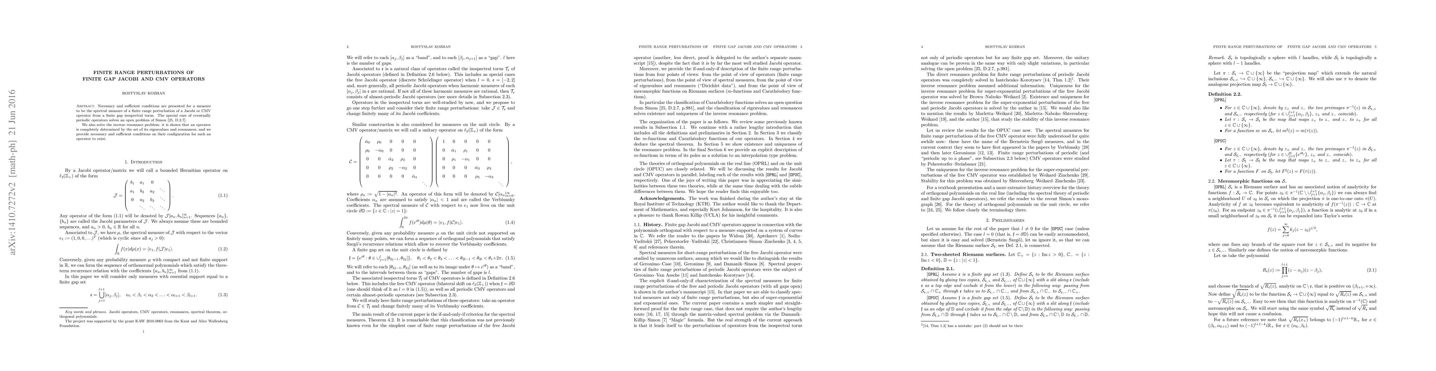 This paper establishes conditions for measures to be spectral measures of finite range perturbations of Jacobi or CMV operators, solving an open problem regarding eventually periodic operators. It also resolves the inverse resonance problem by demonstrating that an operator is uniquely determined by its eigenvalues and resonances.