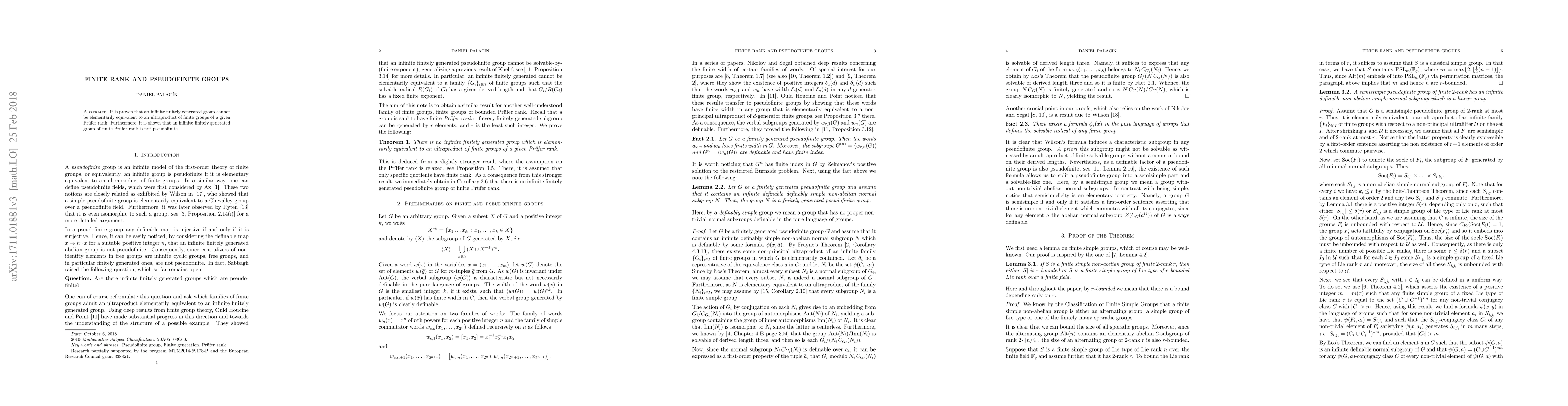 Summary: This paper demonstrates that an infinite finitely generated group cannot be elementarily equivalent to an ultraproduct of finite groups with a specified Pr\"ufer rank. Additionally, it is established that an infinite finitely generated group with finite Pr\"ufer rank is not pseudofinite.