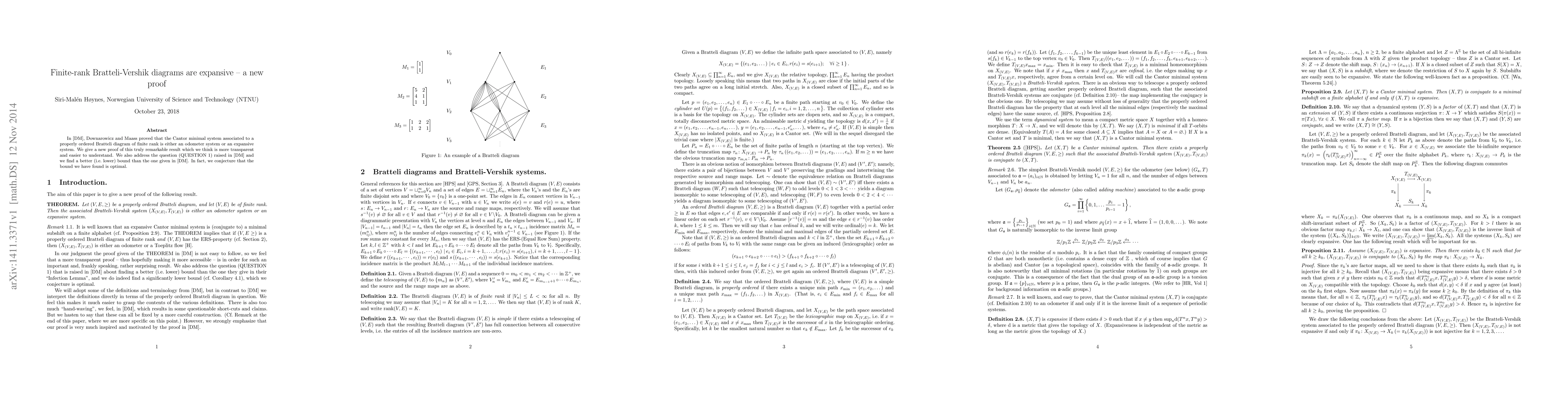 In the paper "Finite-rank Bratteli-Vershik diagrams are expansive" [DM], Downarowicz and Maass proved that the Cantor minimal system associated to a properly ordered Bratteli diagram of finite rank is either an odometer system or an expansive system. We give a new proof of this truly remarkable result which we think is more transparent and easier to understand. We also address the question (QUESTION 1) raised in [DM] and we find a better (i.e. lower) bound than the one given in [DM]. In fact, we conjecture that the bound we have found is optimal.