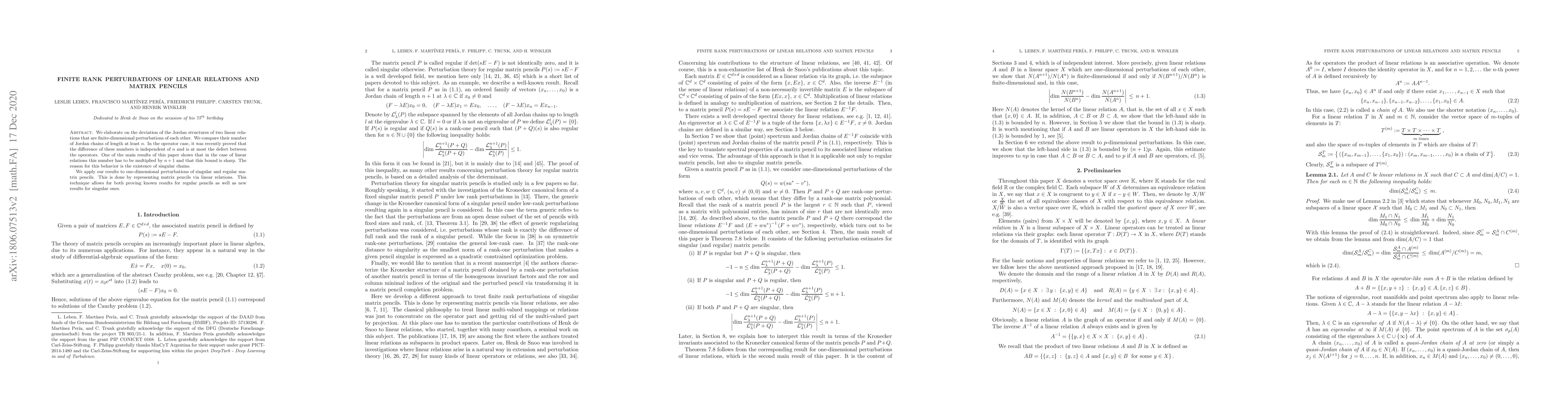 We elaborate on the deviation of the Jordan structures of two linear relations that are finite-dimensional perturbations of each other. We compare their number of Jordan chains of length at least $n$. In the operator case, it was recently proved that the difference of these numbers is independent of $n$ and is at most the defect between the operators. One of the main results of this paper shows that in the case of linear relations this number has to be multiplied by $n+1$ and that this bound is sharp. The reason for this behavior is the existence of singular chains. We apply our results to one-dimensional perturbations of singular and regular matrix pencils. This is done by representing matrix pencils via linear relations. This technique allows for both proving known results for regular pencils as well as new results for singular ones.