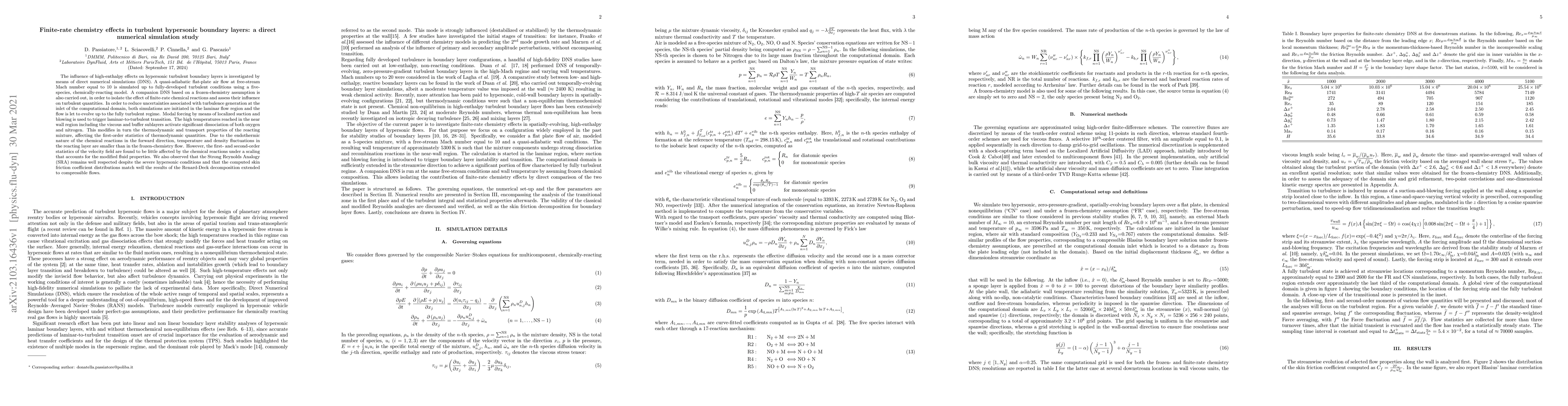 This study uses direct numerical simulations to investigate the effects of finite-rate chemistry on turbulent hypersonic boundary layers, finding that chemical reactions have a limited impact on velocity statistics but affect thermodynamic quantities like temperature and density.