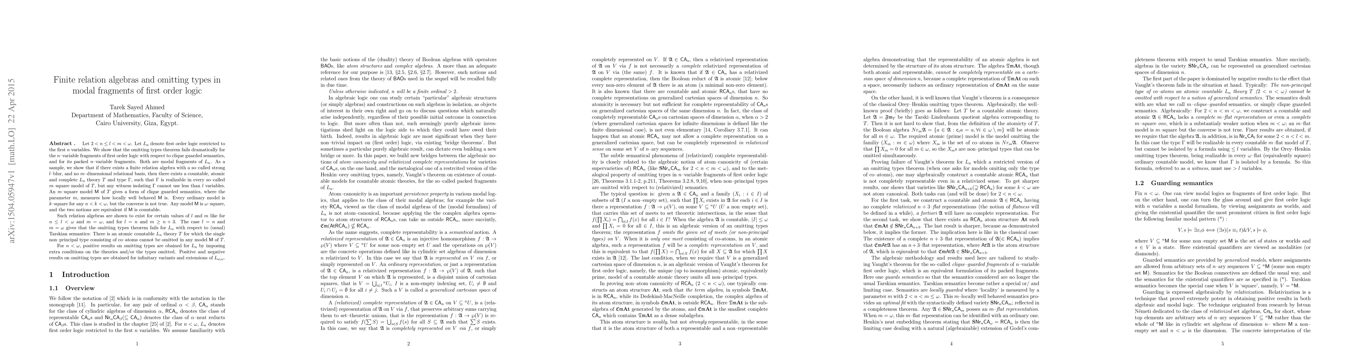 This paper demonstrates that the omitting types theorem fails for certain n-variable fragments of first-order logic under clique guarded semantics and packed n-variable fragments, revealing specific conditions under which countable, atomic, and complete theories cannot omit certain types. It also discusses the existence of finite relation algebras with strong l-blur and the implications for omitting types in these logics.