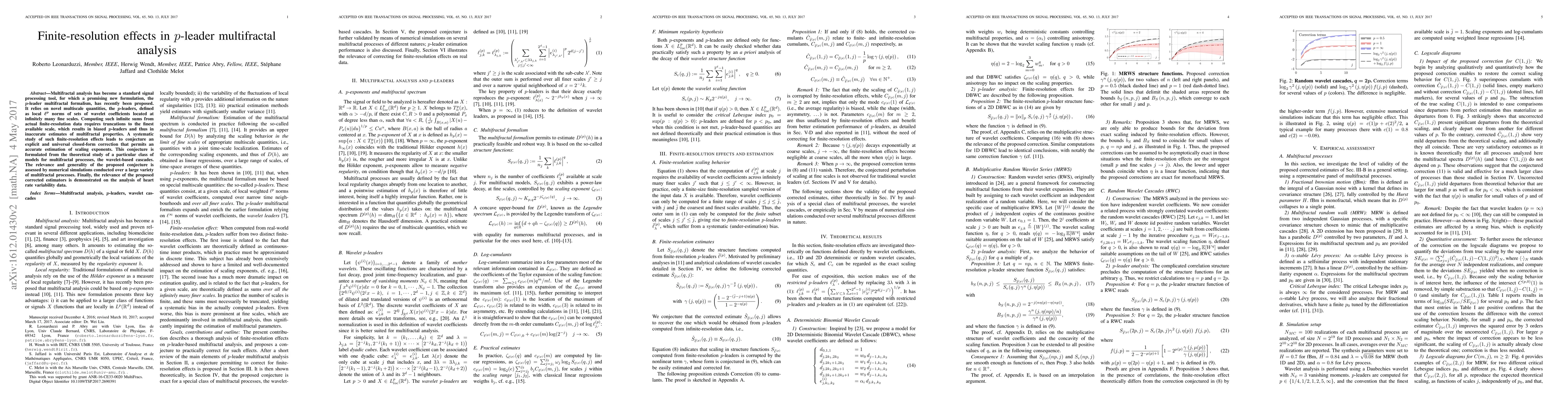 This paper proposes a new p-leader multifractal formalism for analyzing multifractal processes, addressing finite resolution effects that bias the estimation of scaling exponents. It introduces a conjectured universal correction method, validated through simulations and applied to heart rate variability data.
