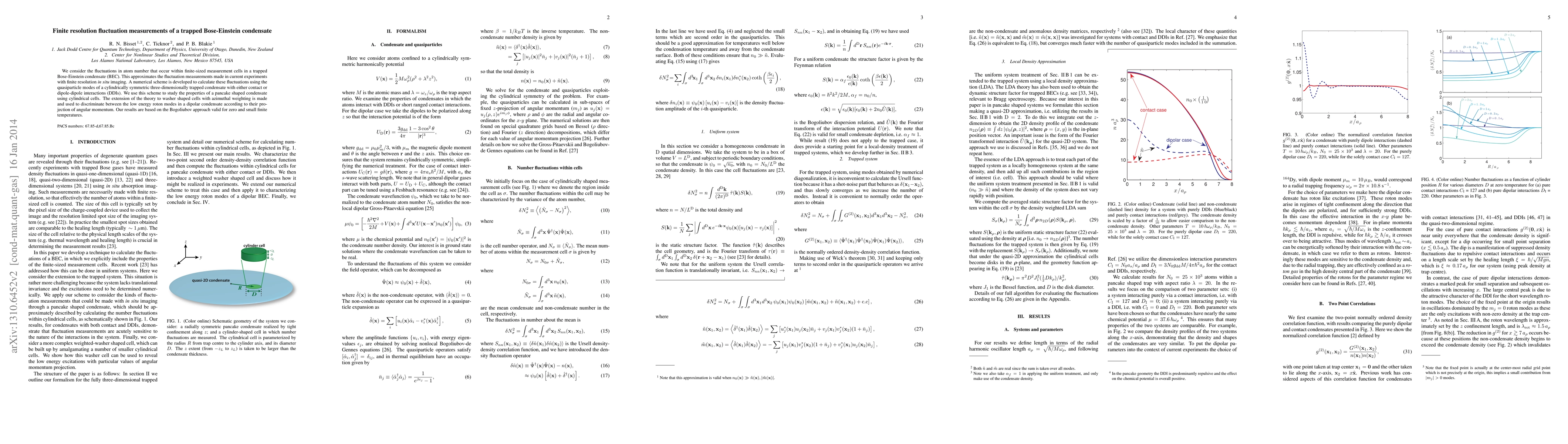 This paper develops a numerical method to measure fluctuations in atom number within finite-sized cells in a trapped Bose-Einstein condensate, approximating current experimental conditions. The study uses quasiparticle modes and the Bogoliubov approach to analyze fluctuations in cylindrical and washer-shaped cells, distinguishing low-energy roton modes based on angular momentum projection.