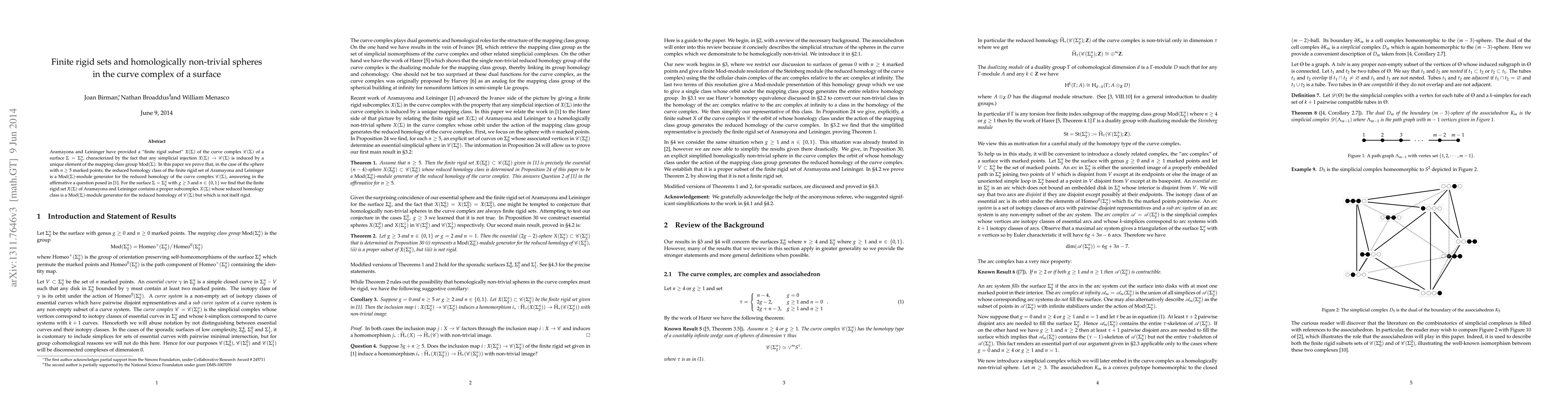 Researchers prove that for surfaces with 5 or more marked points, a specific set of simplicial injections generates the homology class of the curve complex, answering a question about finite rigid subsets.
