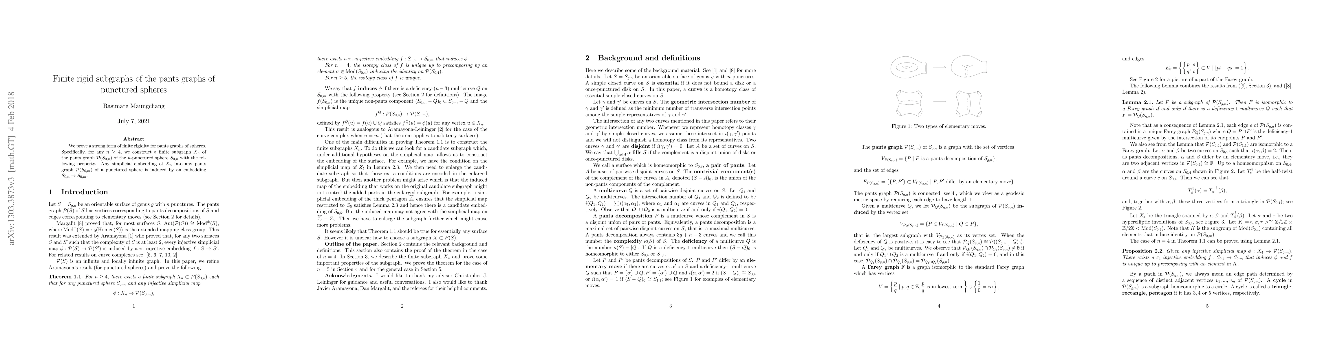 This paper establishes a strong finite rigidity theorem for pants graphs of punctured spheres, showing that specific finite subgraphs of these graphs retain their structure when embedded into other pants graphs, indicating an underlying embedding of the original punctured sphere.