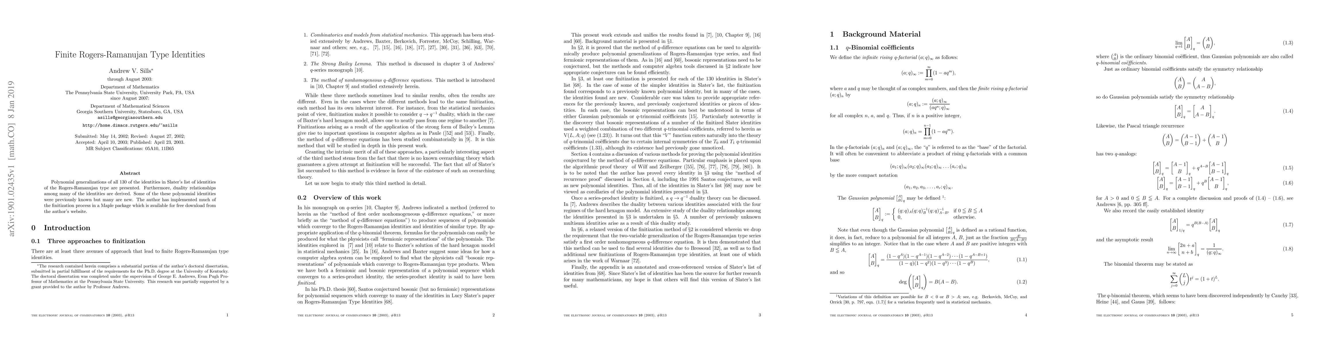 Polynomial generalizations of all 130 of the identities in Slater's list of identities of the Rogers-Ramanujan type are presented. Furthermore, duality relationships among many of the identities are derived. Some of the these polynomial identities were previously known but many are new. The author has implemented much of the finitization process in a Maple package which is available for free download from the author's website.