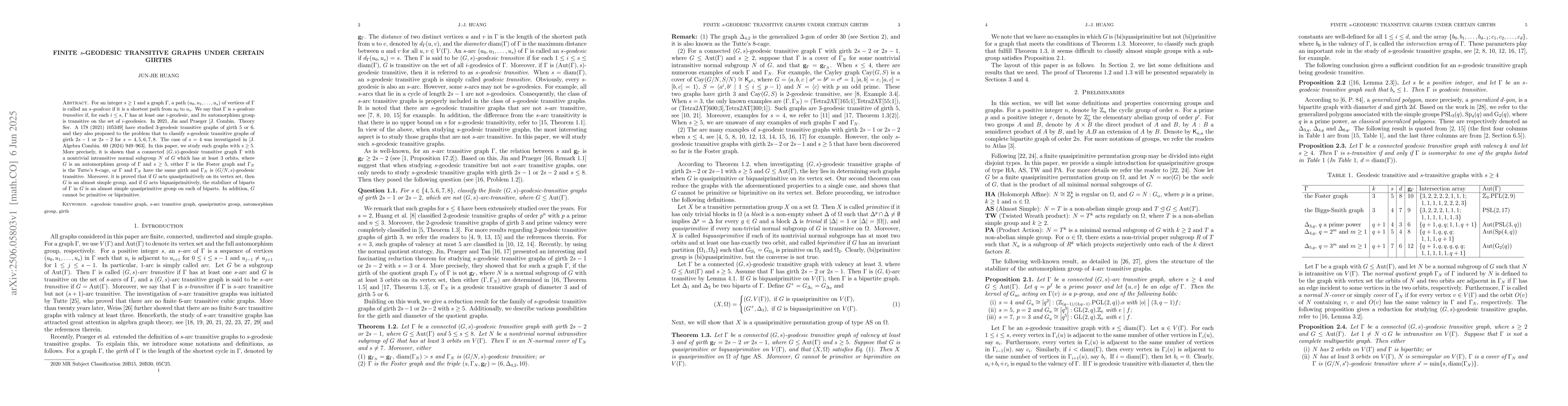 For an integer $s\geq1$ and a graph $\Gamma$, a path $(u_0, u_1, \ldots, u_{s})$ of vertices of $\Gamma$ is called an {\em $s$-geodesic} if it is a shortest path from $u_0$ to $u_{s}$. We say that $\Gamma$ is {\em $s$-geodesic transitive} if, for each $i\leq s$, $\Gamma$ has at least one $i$-geodesic, and its automorphism group is transitive on the set of $i$-geodesics. In 2021, Jin and Praeger [J. Combin. Theory Ser. A 178 (2021) 105349] have studied $3$-geodesic transitive graphs of girth $5$ or $6$, and they also proposed to the problem that to classify $s$-geodesic transitive graphs of girth $2s-1$ or $2s-2$ for $s=4, 5, 6, 7, 8$. The case of $s = 4$ was investigated in [J. Algebra Combin. 60 (2024) 949--963]. In this paper, we study such graphs with $s\geq5$. More precisely, it is shown that a connected $(G,s)$-geodesic transitive graph $\Gamma$ with a nontrivial intransitive normal subgroup $N$ of $G$ which has at least $3$ orbits, where $G$ is an automorphism group of $\Gamma$ and $s\geq 5$, either $\Gamma$ is the Foster graph and $\Gamma_N$ is the Tutte's $8$-cage, or $\Gamma$ and $\Gamma_N$ have the same girth and $\Gamma_N$ is $(G/N,s)$-geodesic transitive. Moreover, it is proved that if $G$ acts quasiprimitively on its vertex set, then $G$ is an almost simple group, and if $G$ acts biquasiprimitively, the stabilizer of biparts of $\Gamma$ in $G$ is an almost simple quasiprimitive group on each of biparts. In addition, $G$ cannot be primitive or biprimitive.