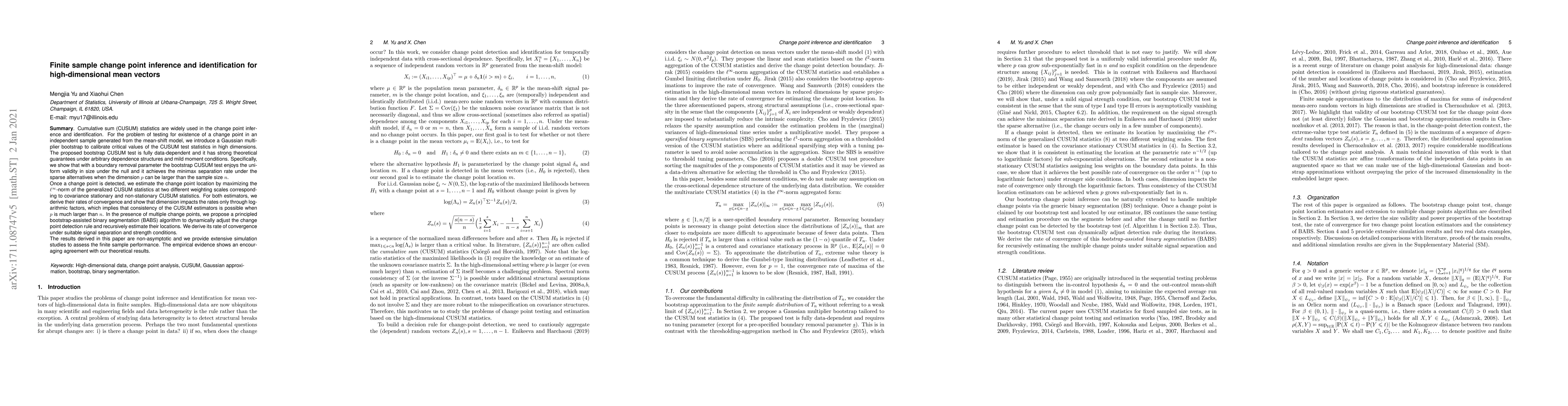 This paper introduces a Gaussian multiplier bootstrap CUSUM test for detecting change points in high-dimensional mean vectors, ensuring uniform validity under the null and achieving minimax separation rates under sparse alternatives. It also proposes a BABS algorithm for multiple change points and demonstrates consistency even when the dimension exceeds the sample size, supported by extensive simulation studies.
