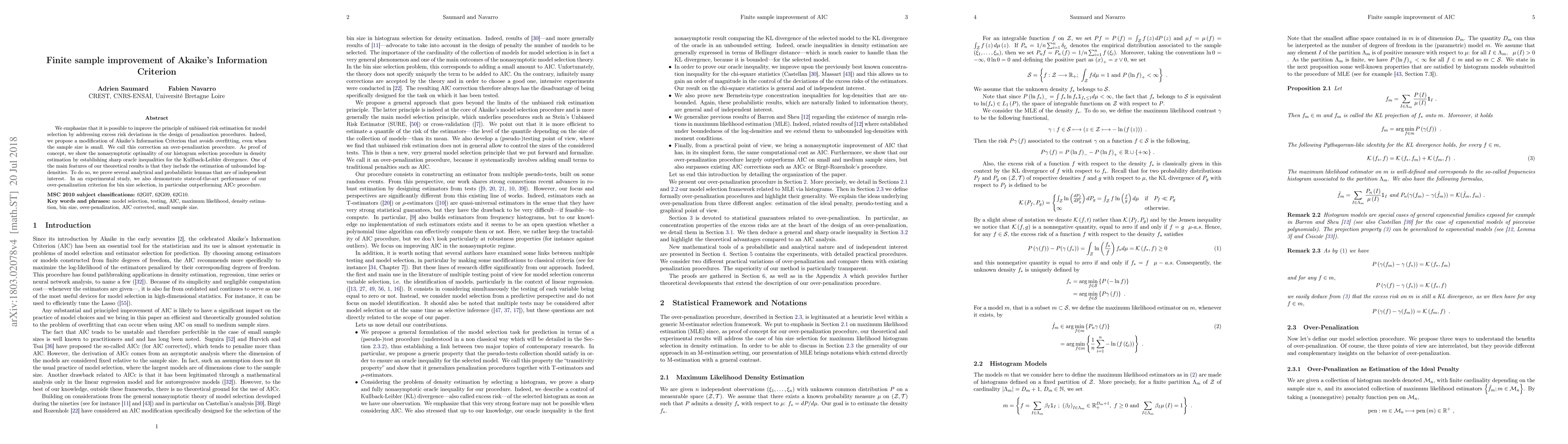 A new method for model selection called over-penalization improves Akaike's Information Criterion to avoid overfitting, even with small sample sizes. This approach is demonstrated to outperform other methods in experimental studies.
