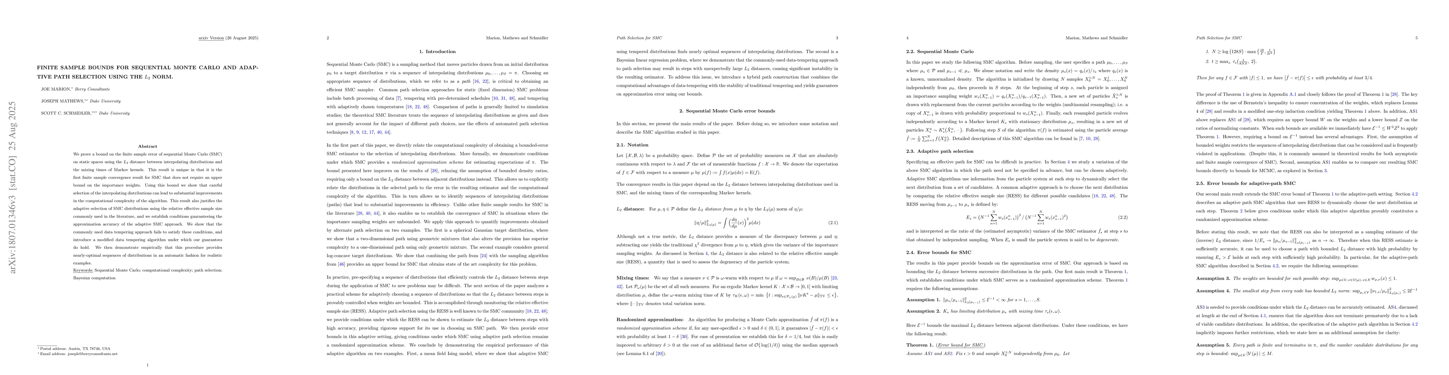 We prove a bound on the finite sample error of sequential Monte Carlo (SMC) on static spaces using the $L_2$ distance between interpolating distributions and the mixing times of Markov kernels. This result is unique in that it is the first finite sample convergence result for SMC that does not require an upper bound on the importance weights. Using this bound we show that careful selection of the interpolating distributions can lead to substantial improvements in the computational complexity of the algorithm. This result also justifies the adaptive selection of SMC distributions using the relative effective sample size commonly used in the literature and we establish conditions guaranteeing the approximation accuracy of the adaptive SMC approach. We then demonstrate empirically that this procedure provides nearly-optimal sequences of distributions in an automatic fashion for realistic examples.