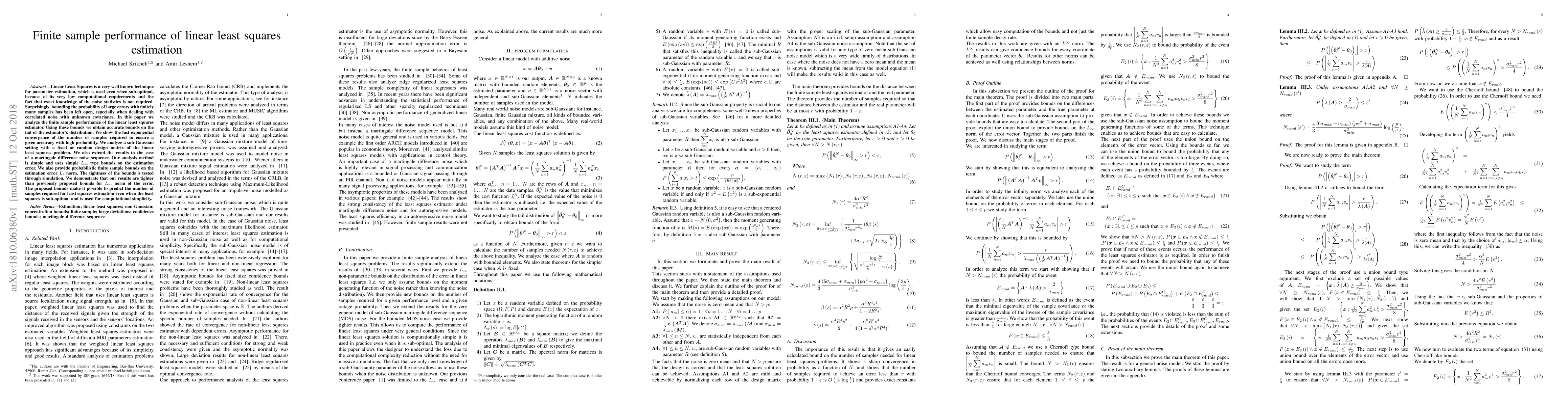 This paper analyzes the finite sample performance of linear least squares estimation, providing tighter probabilistic bounds on the estimation error for both correlated and independent noise scenarios. The results demonstrate fast exponential convergence of sample requirements for achieving desired accuracy, making the method applicable even when sub-optimal.