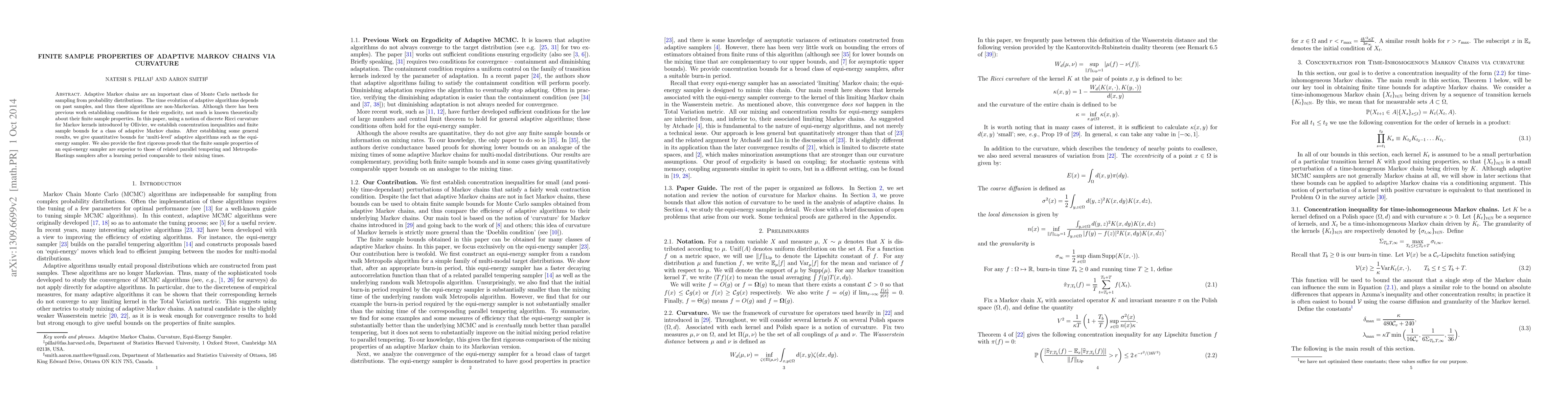 The paper introduces a new method for analyzing adaptive Markov chains using curvature, providing concentration inequalities and finite sample bounds, which is a significant technical advancement in the field.